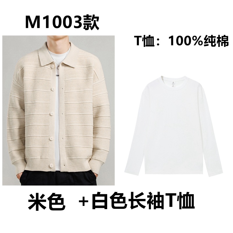 • 베이지 M1003 + 화이트 긴팔 티셔츠