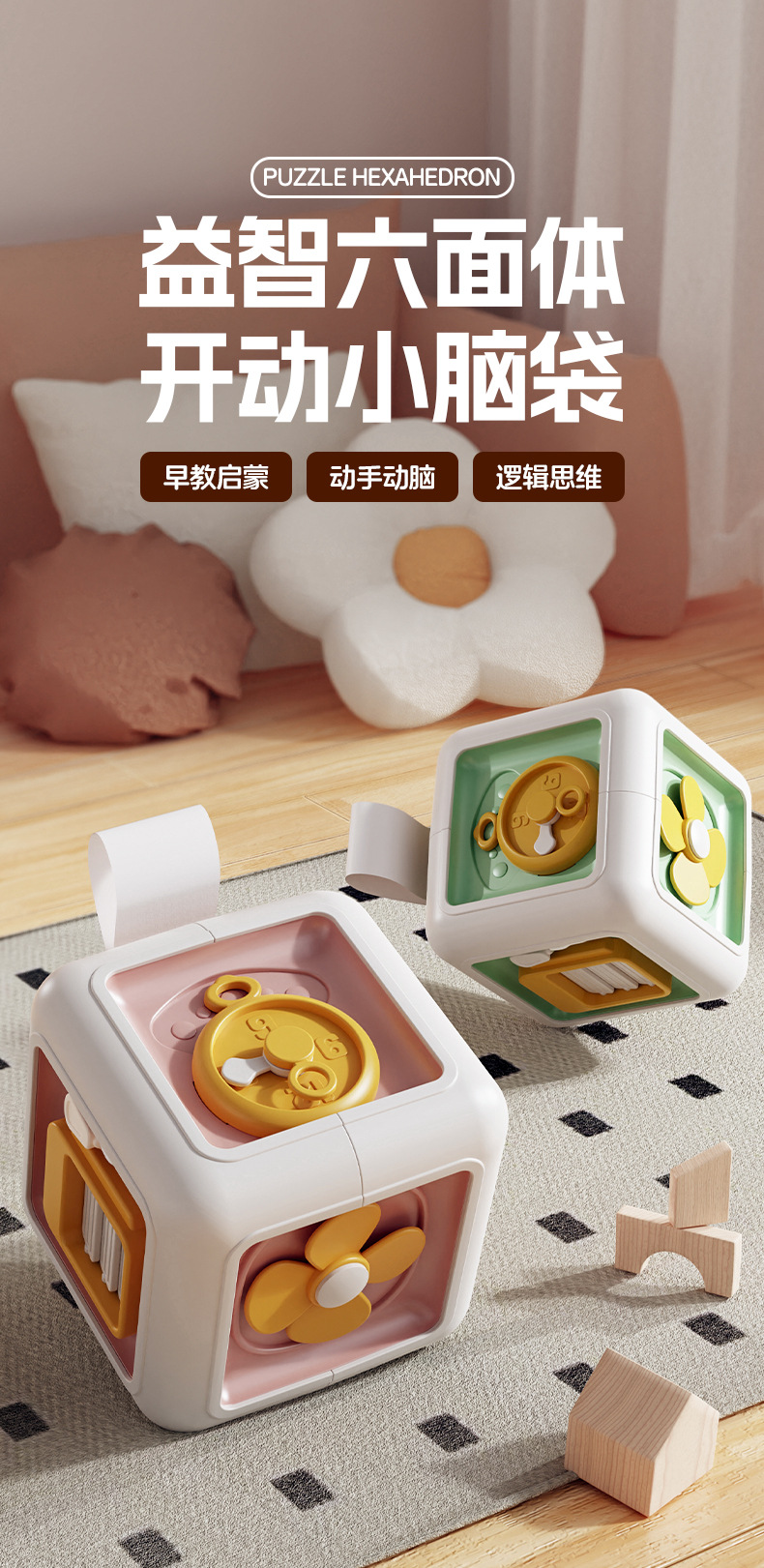 몬테소리 큐브 놀이용 딸랑이 육면체 장난감 바쁜 공 아기 0-3세 유아 교육용 손잡이 장난감스토어 가기