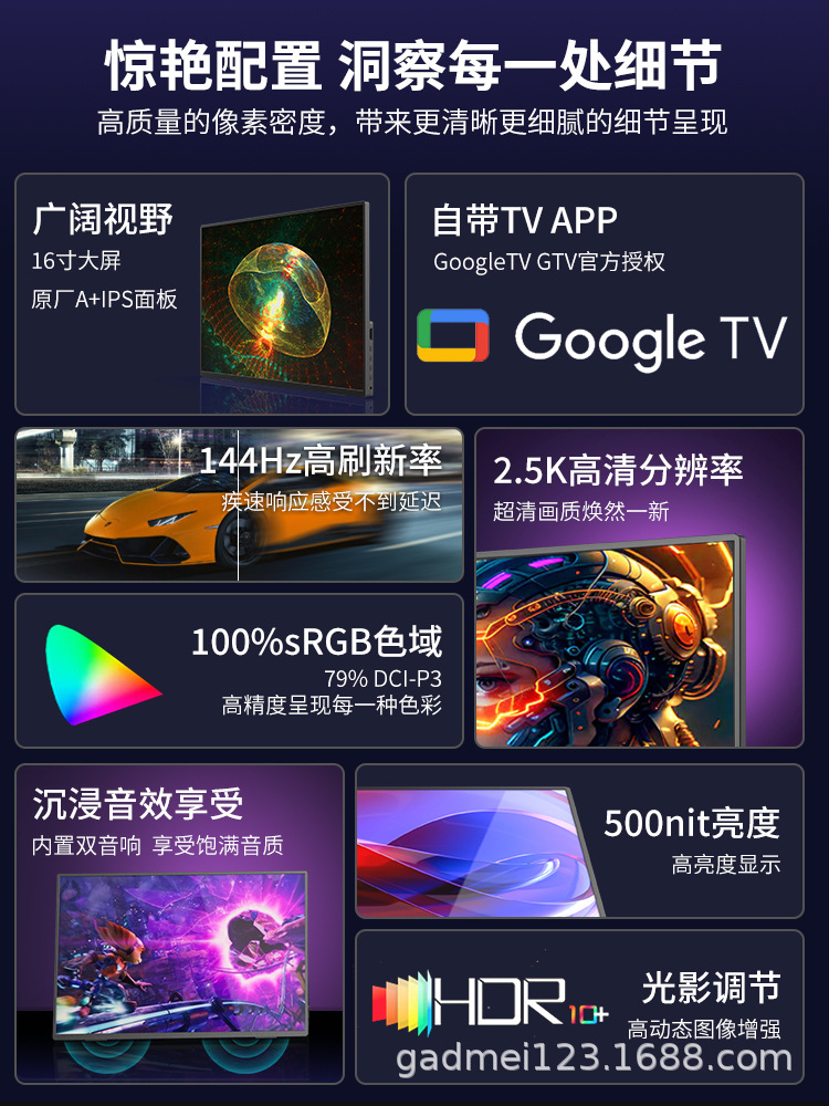 넷플릭스 4k 출력 구글 TV 시스템 휴대용 디스플레이 2.5k144hz 높은 브러시 휴대용 화면