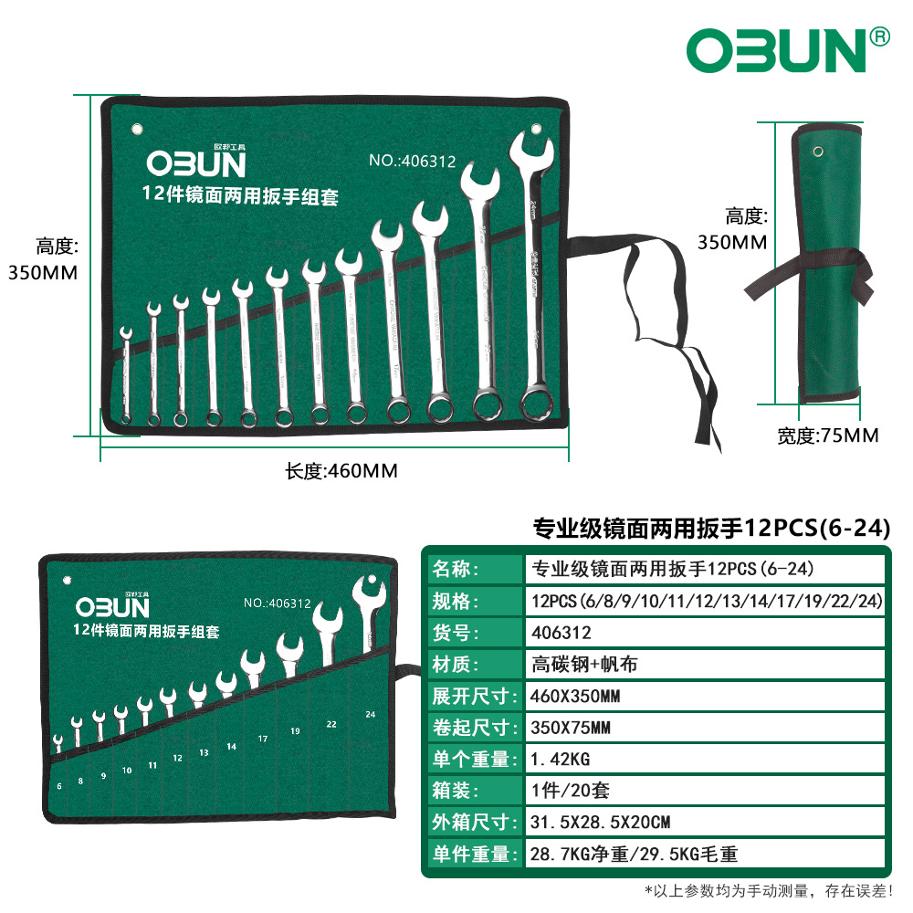 • 406312/프로페셔널 그레이드 미러 콤비네이션 렌치 12PCS (6-24)