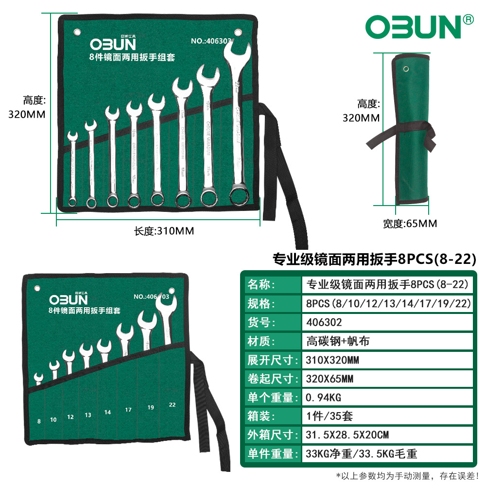 • 406302 /프로페셔널 그레이드 미러 콤비네이션 렌치 8PCS (6-19)
