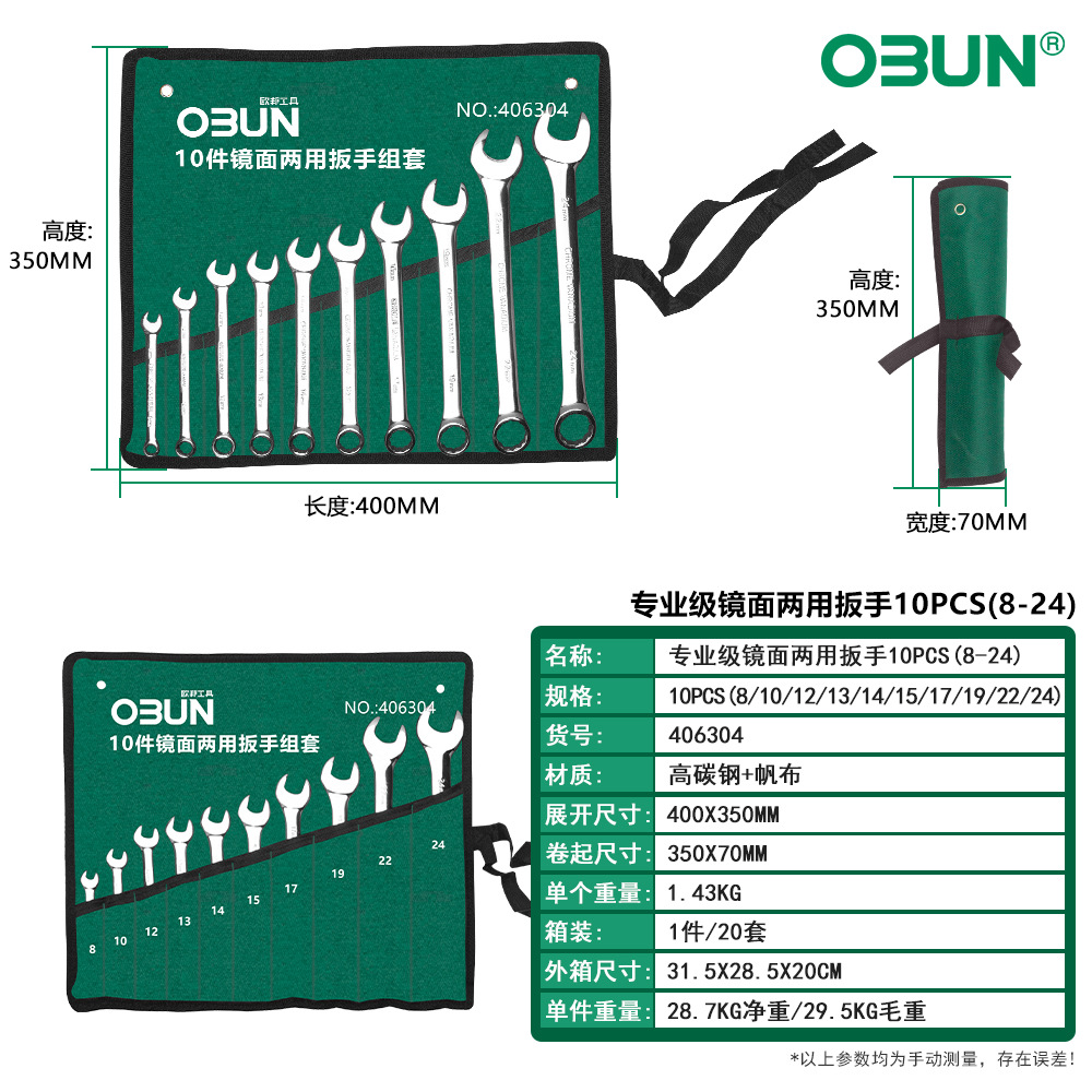 • 406304/프로페셔널 그레이드 미러 콤비네이션 렌치 10PCS (8-24)