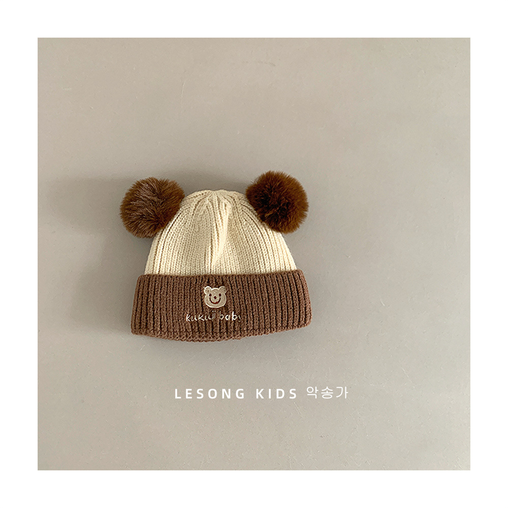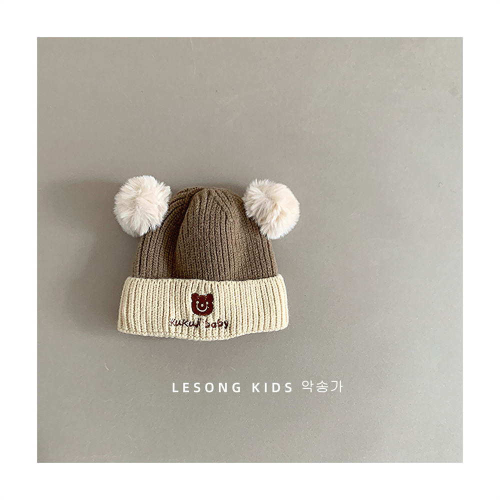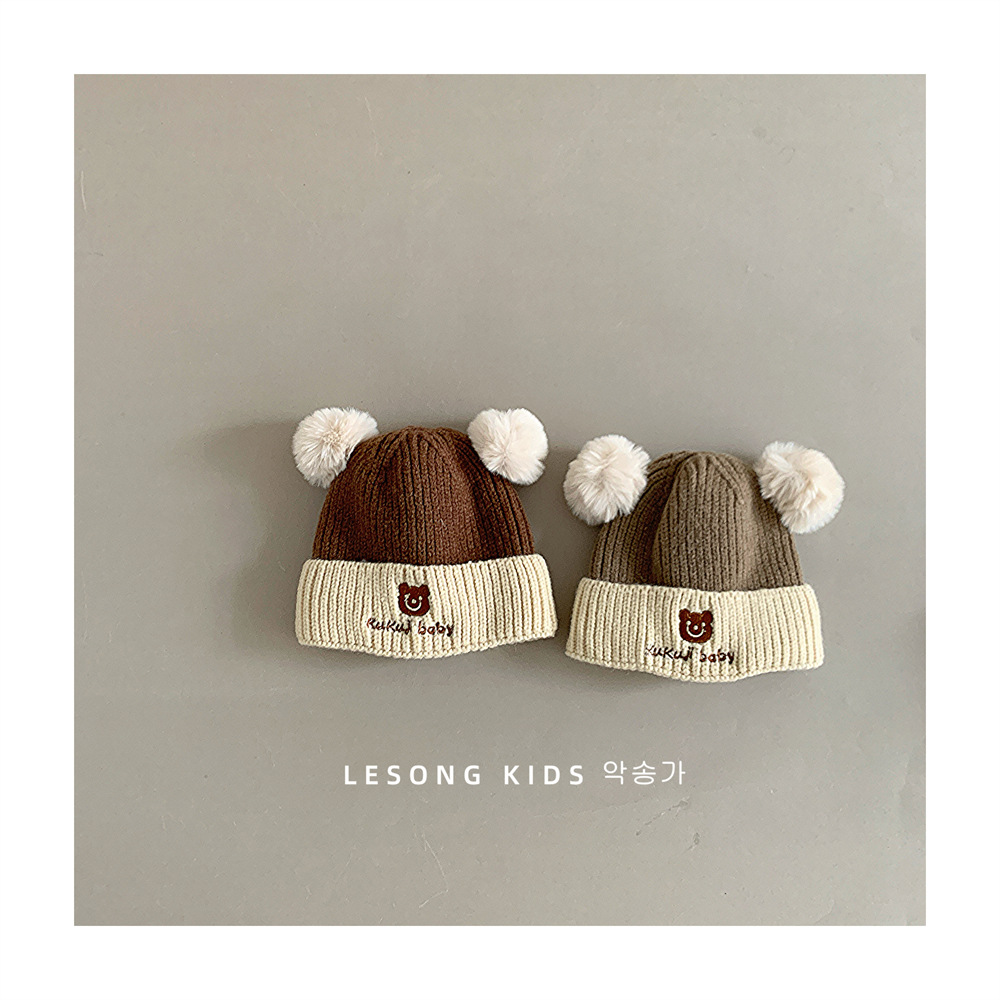 어린이 모자 가을과 겨울 아기 두꺼운 귀 보호 풀오버 모자 소년과 소녀 귀여운 곰 방풍 니트 울 모자