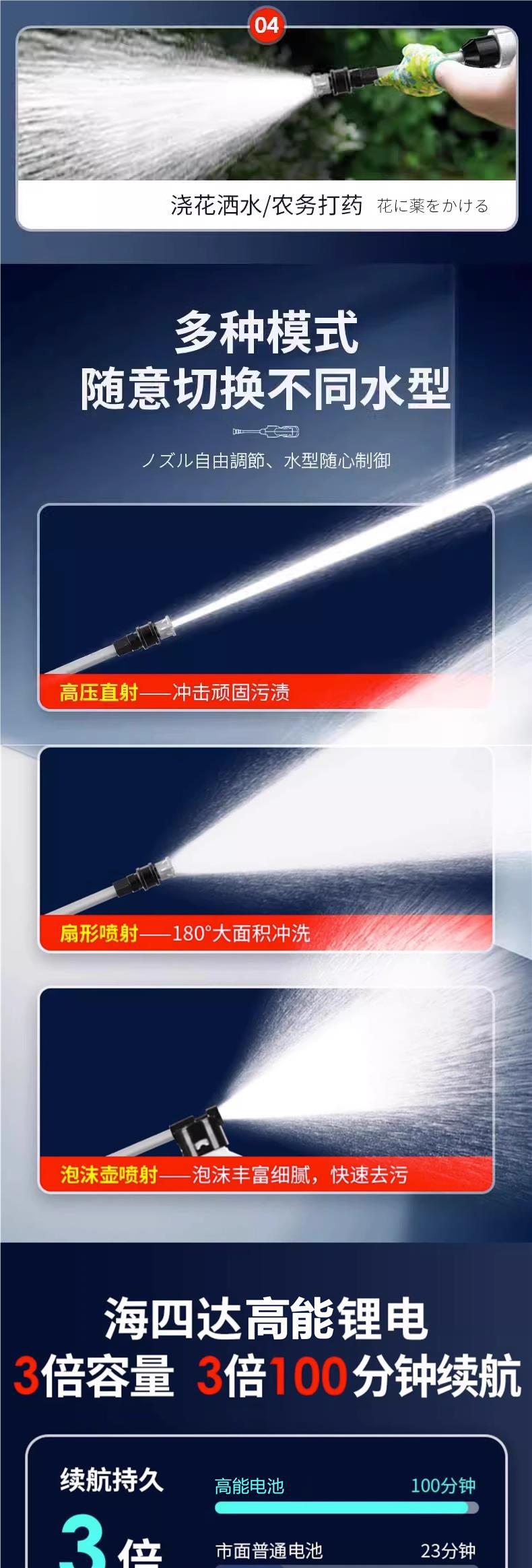 수입 된 고압 세차 물 총 가정용 무선 부스터 아티팩트 초압 리튬 배터리 특수 전기 물총스토어 가기