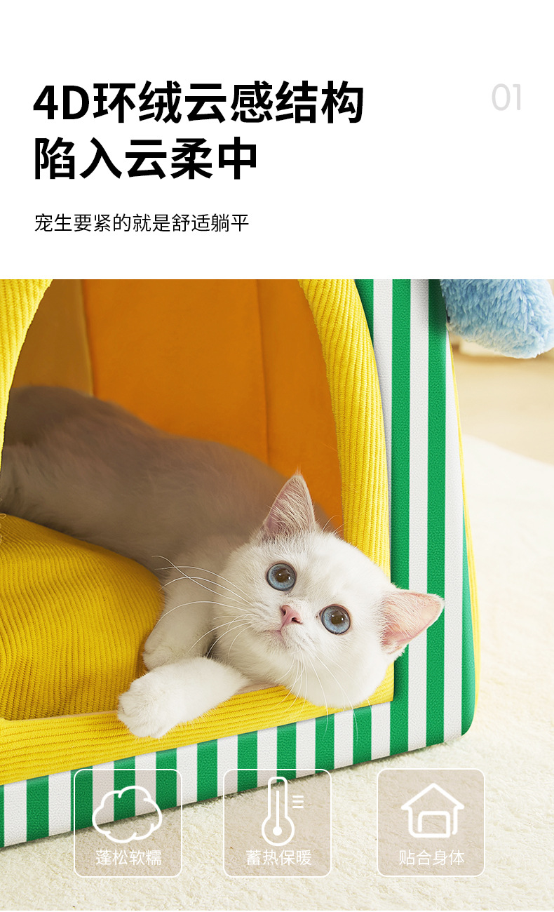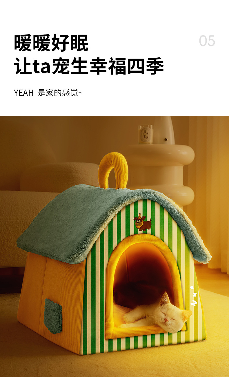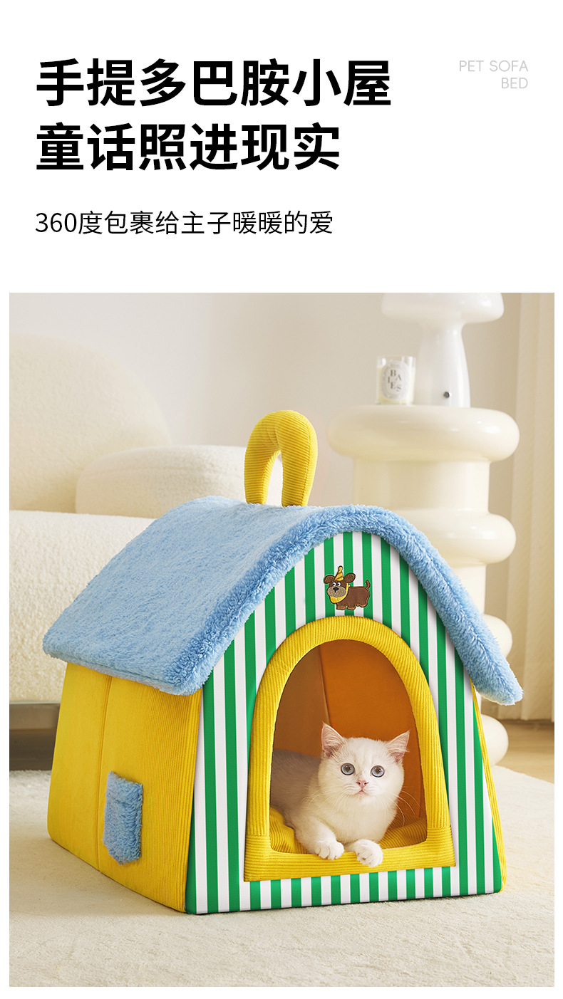 크로스보더 고양이 집, 겨울용 두꺼운 밀폐형 안전한 탈부착 및 세탁 가능한 애완동물 보온 수면용 강아지 집, 사계절 사용 가능, 도매스토어 가기