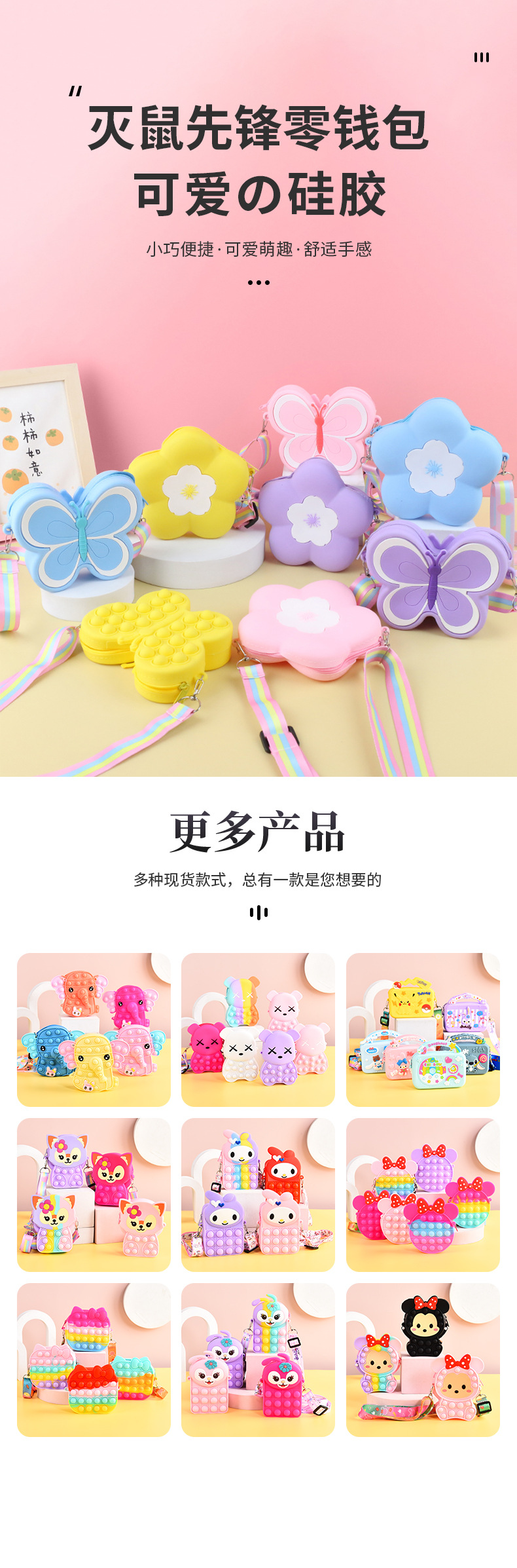 실리콘 가방 어린이 스트레스 해소 핸드백 꽃 나비 동전 지갑 다용도 여성 크로스백 구멍 가방 만화 작은 숄더백