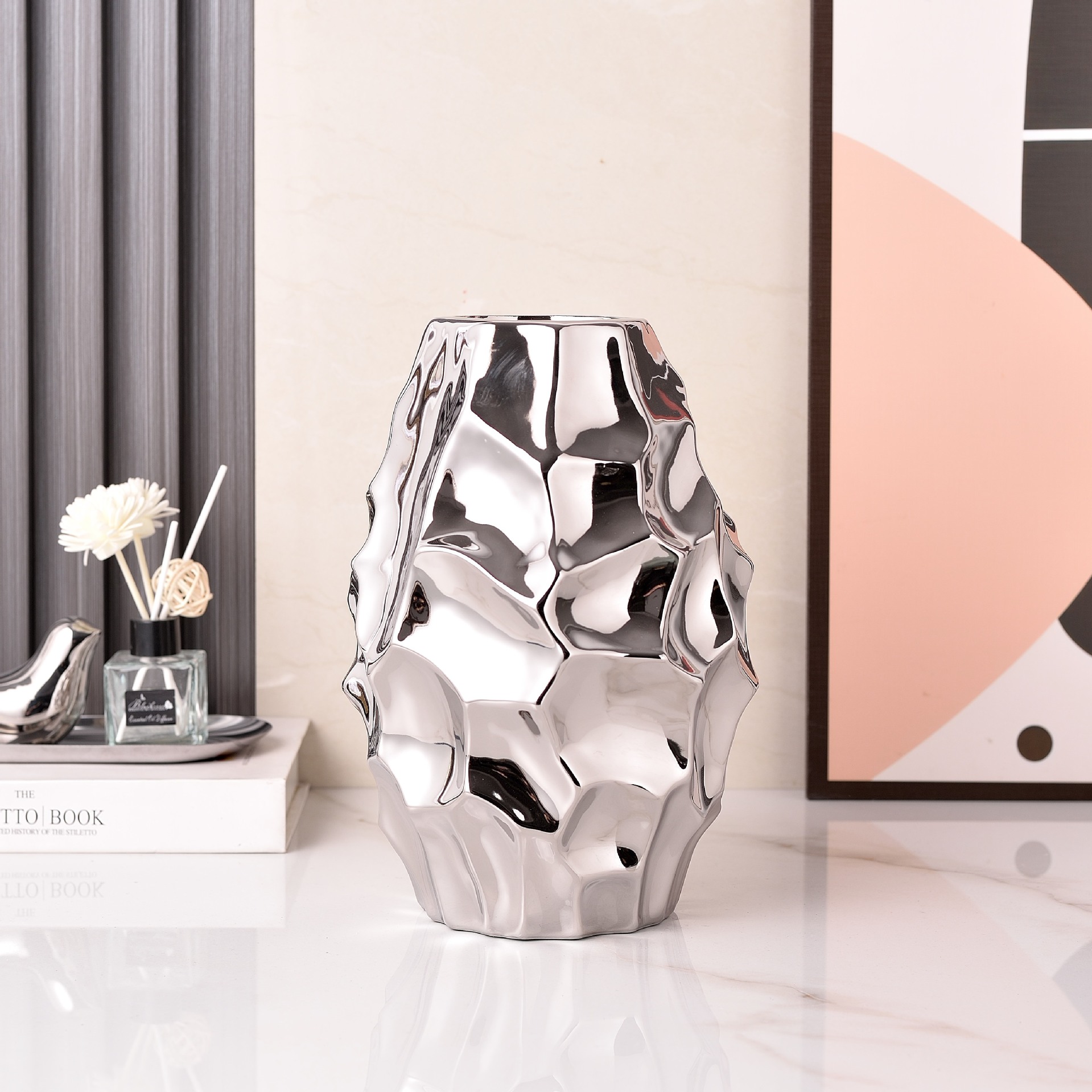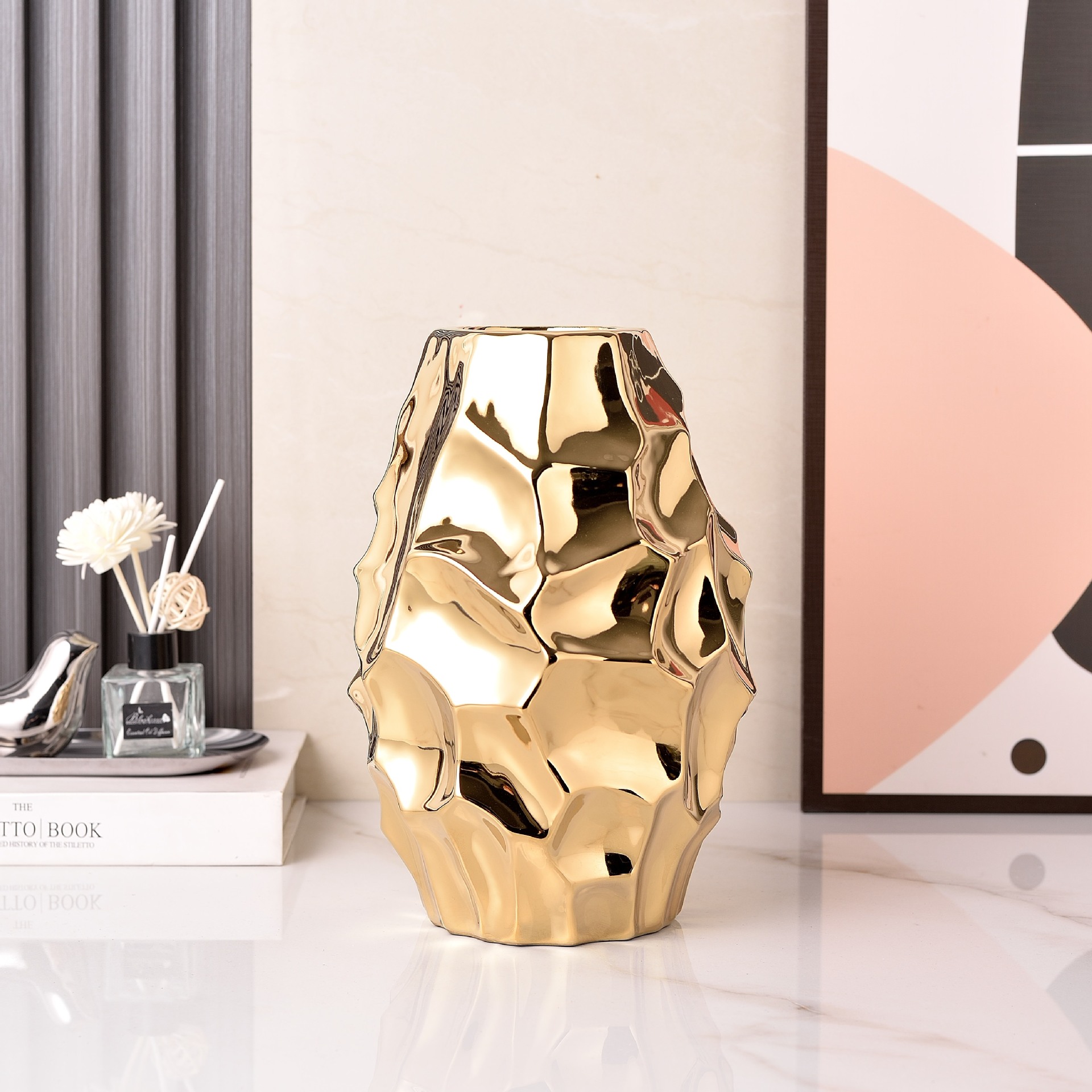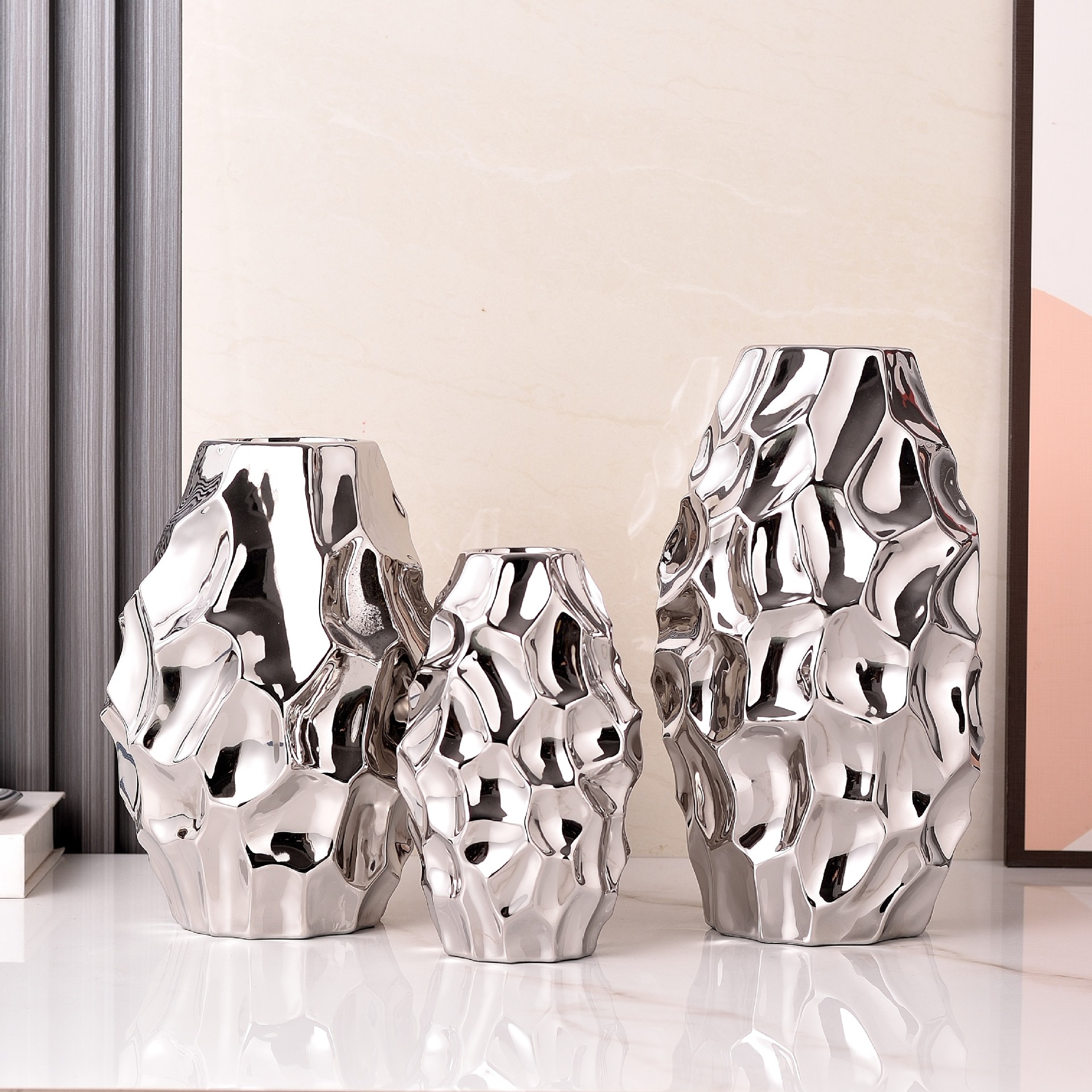 간단한 현대 패션 전기 도금 금과 실버 세라믹 꽃병 홈 부드러운 장식 공예 장식품 3 종 세트 왕청