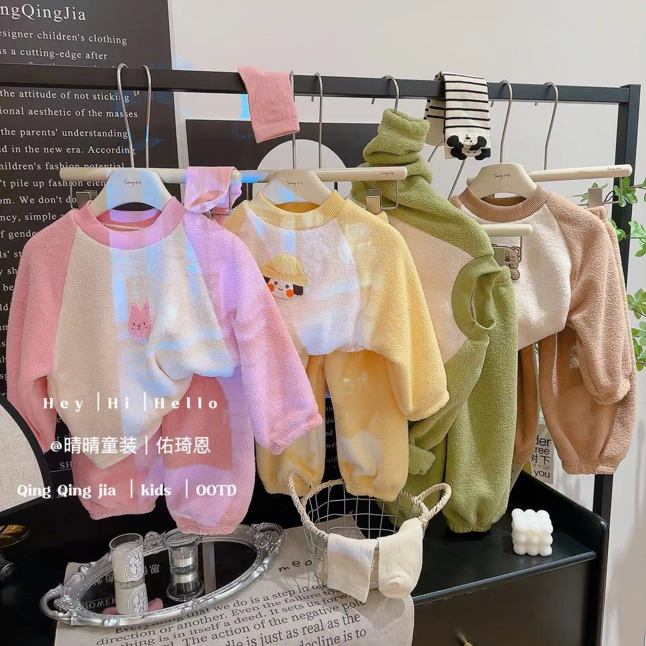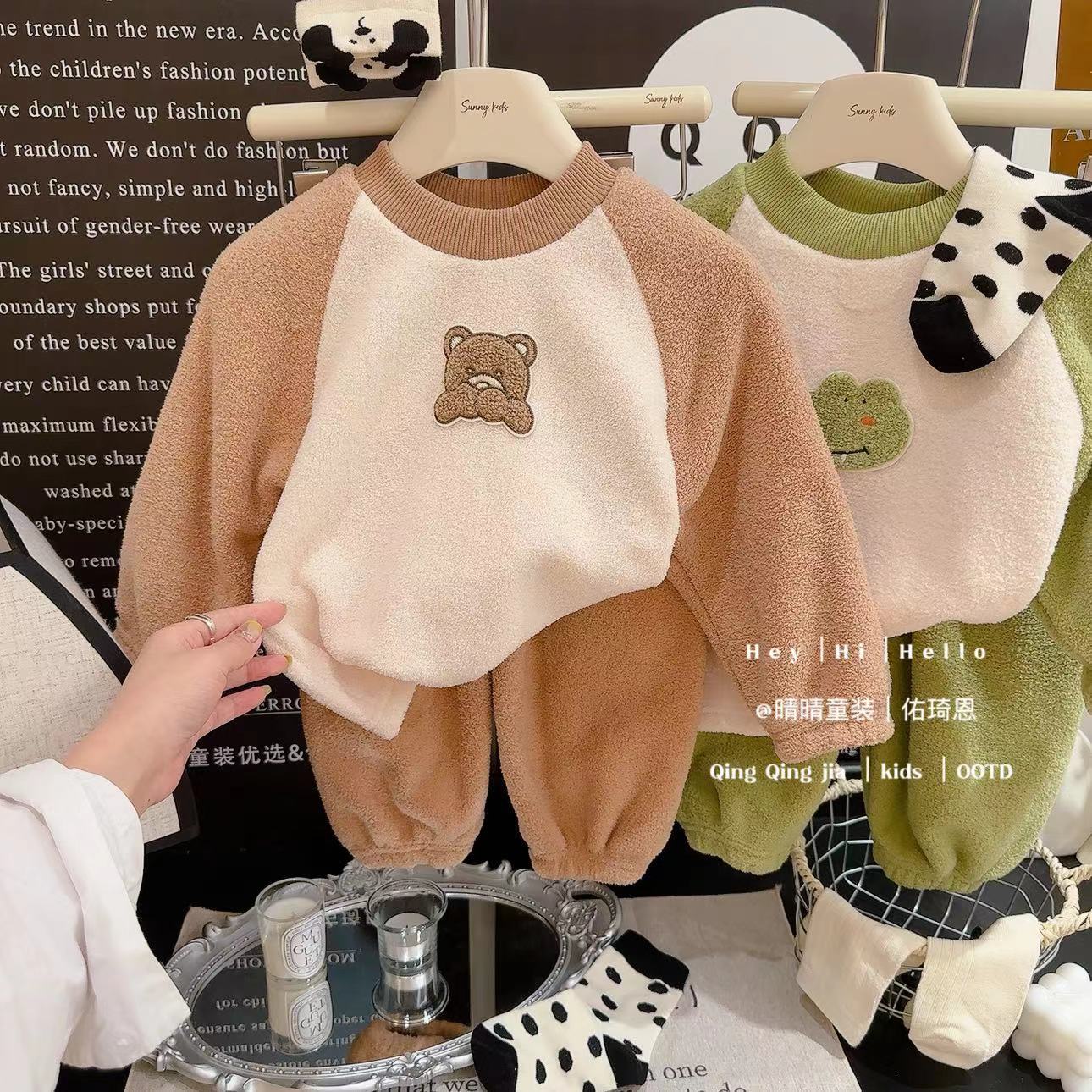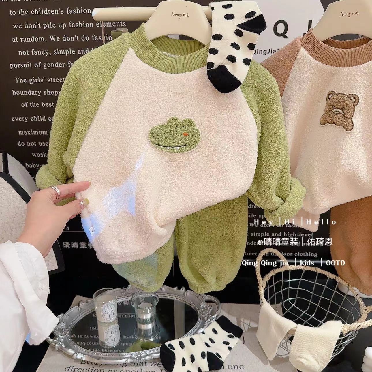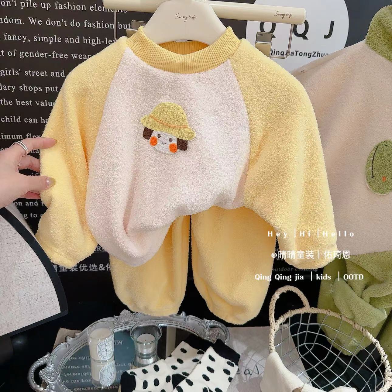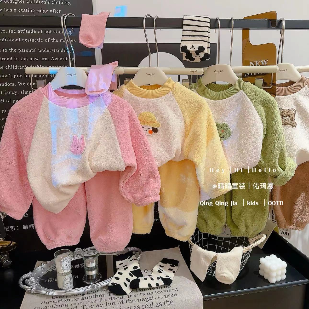 어린이 세트 남아 여아 플리스 잠옷 투피스 세트 아동복 만화 패턴 겨울 홈웨어 어린이용스토어 가기