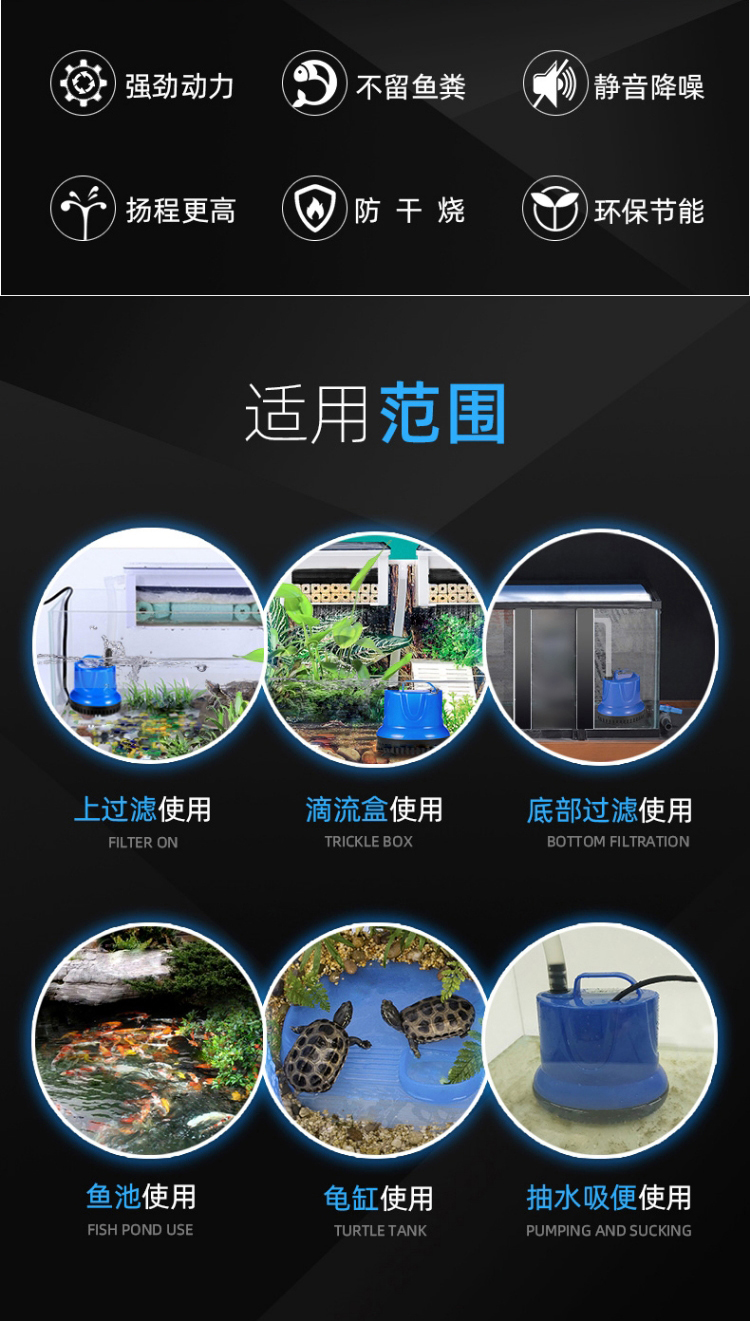 어항 낮은 수위 폐 흡입 가정용 바닥 흡입 펌프 잠수정 펌프 조용한 펌핑 물 교환 펌프 거북이 탱크 순환 팬 시첸스토어 가기