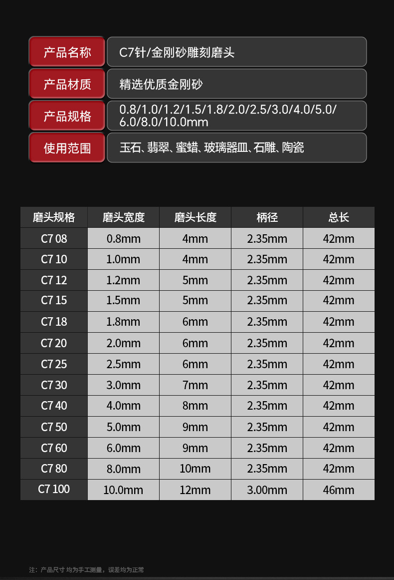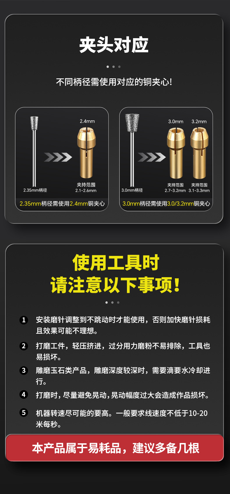 에머리 연삭 헤드 C7 바늘 합금 연삭 헤드 강철 모래 연마 연삭 헤드 연삭 바늘 다이아몬드 옥 조각 도구스토어 가기