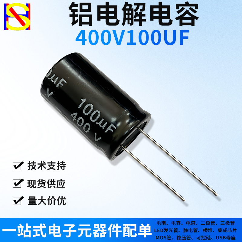 400V100UF 16X25mm直插件铝电解电容器/编排带/剪切短脚/定型高频一站式电子元器件BOM配单