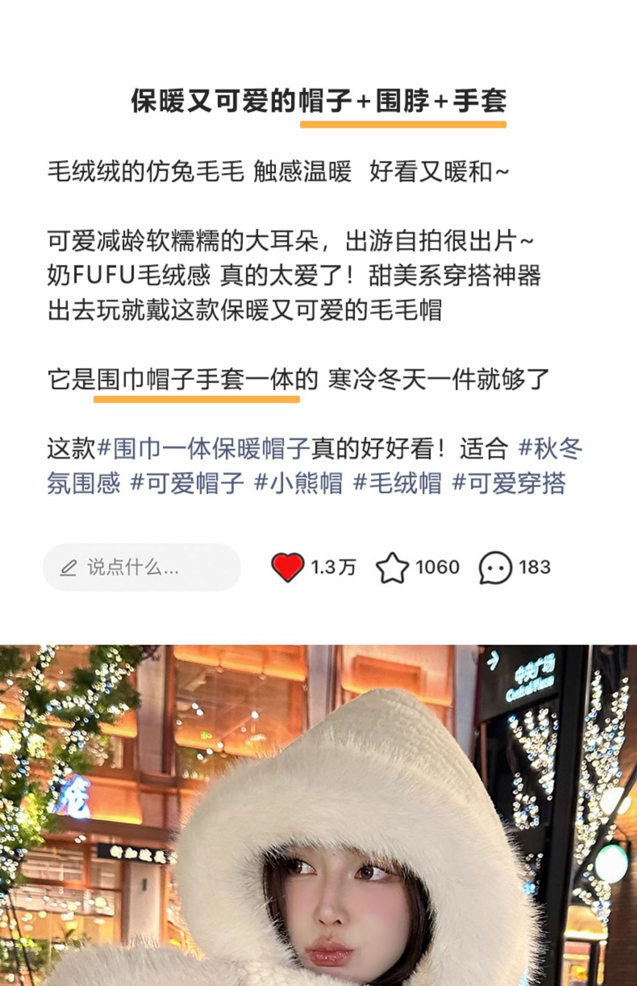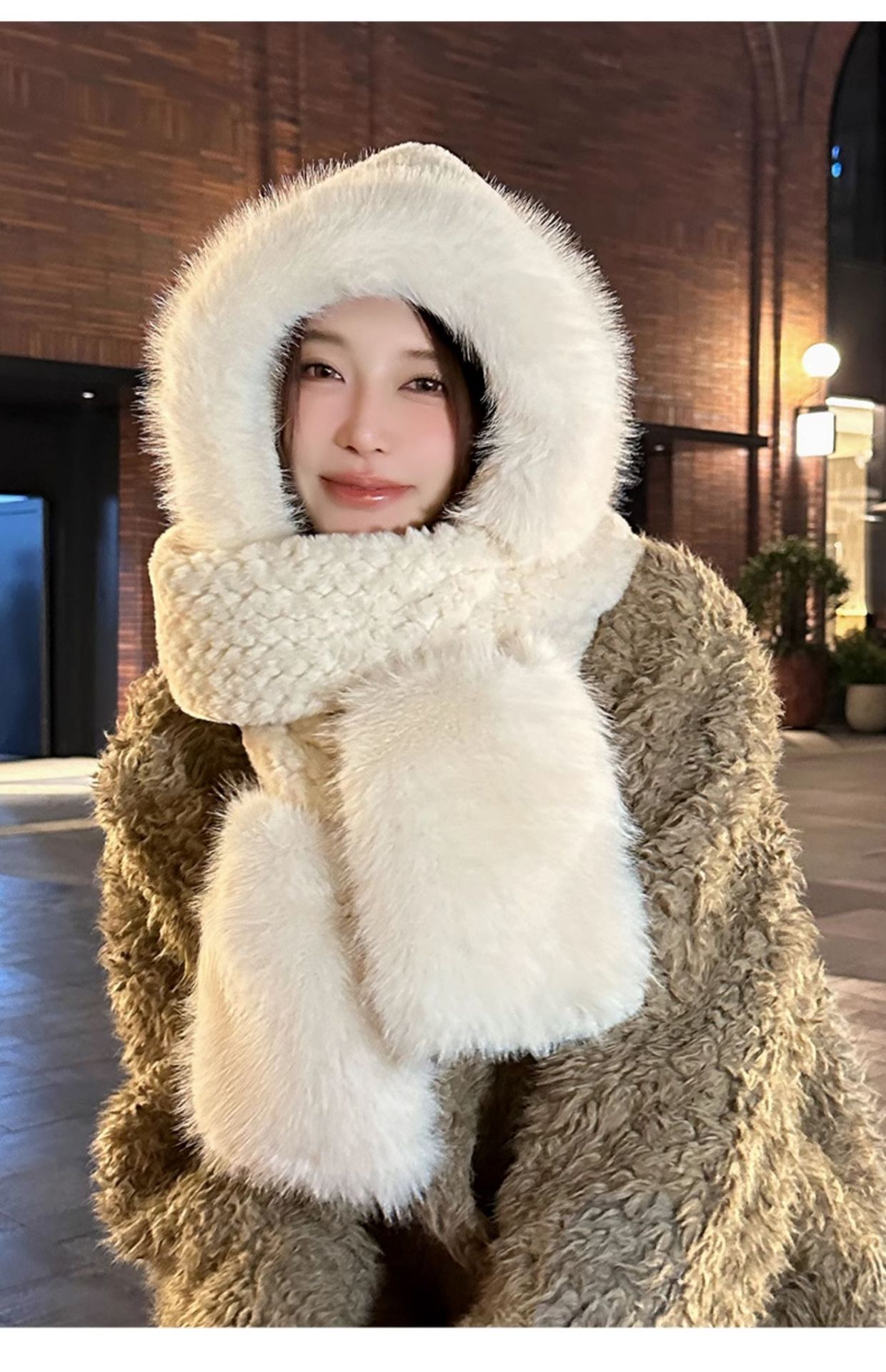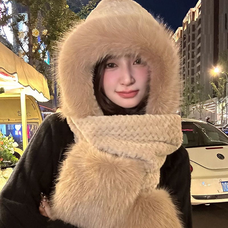 봉제 모자 스카프 장갑 올인원 여성 가을 겨울 올매치 두꺼운 따뜻한 사이클링 방한 귀 보호 후드 스카프스토어 가기