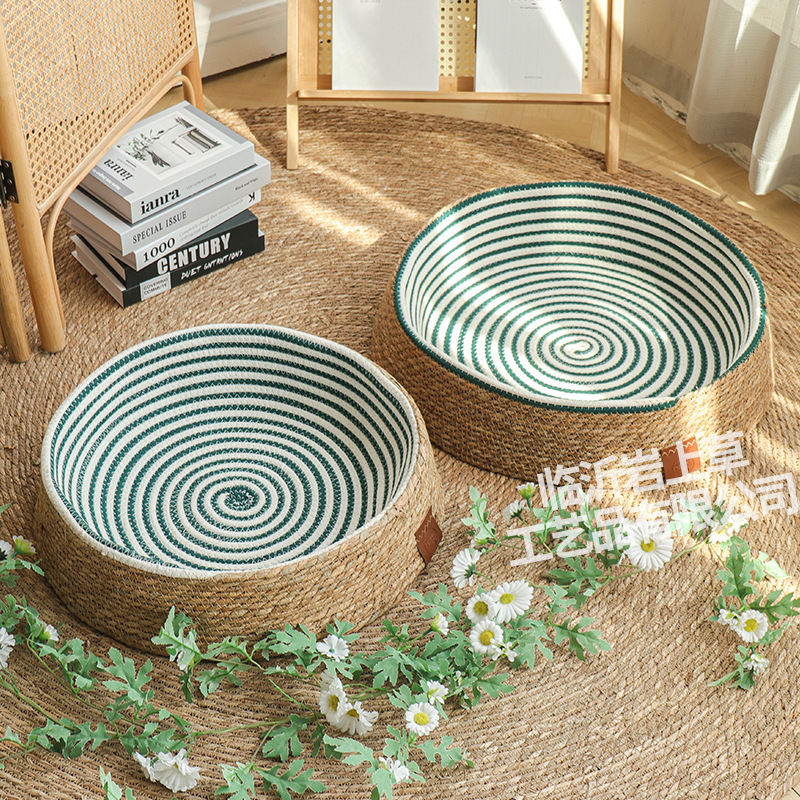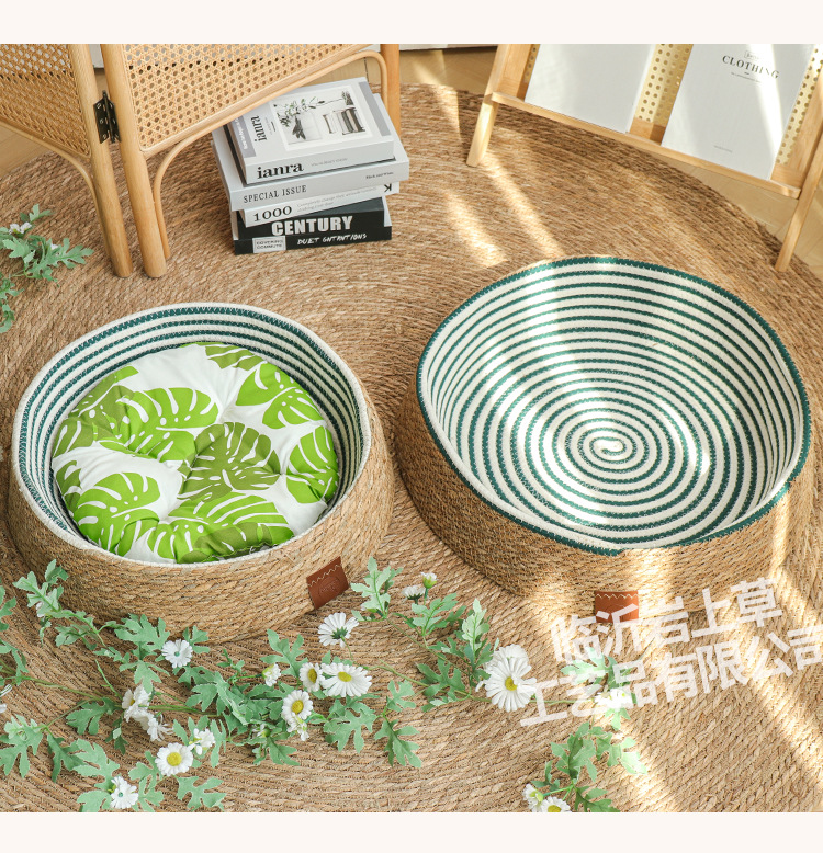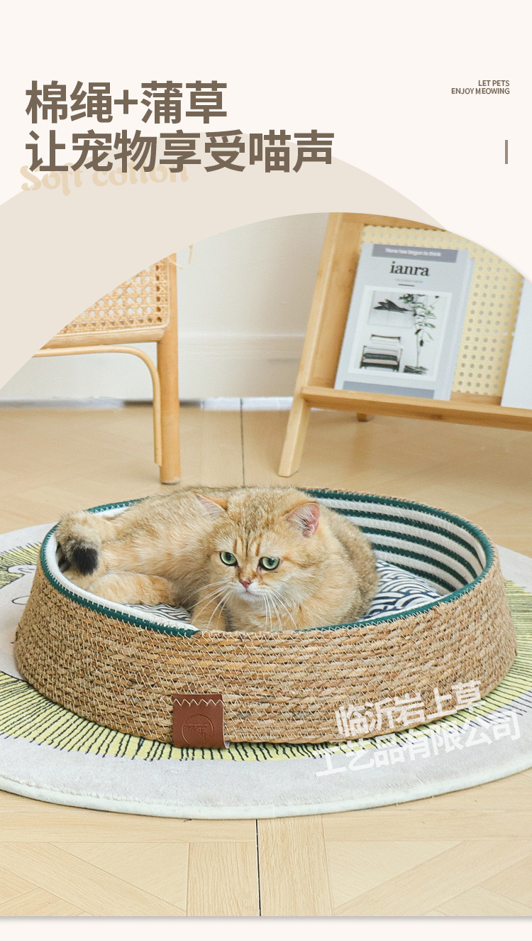 새로운 등나무 고양이 둥지 사계절 유니버설 애완 동물 인터넷 인기 고양이 둥지 패드 스크래치 저항하는 일본 스타일 고양이 집 개 둥지 통기성 및 편안한