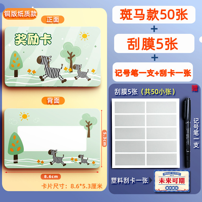 • [종이 50매] 스크래치 보상 카드 - 얼룩말 (스크래치 카드 + 마커 보내기)