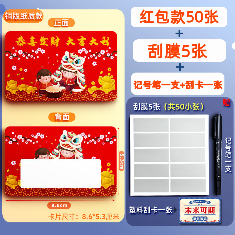 • [종이 50매] 행운의 스크래치 카드 - 빨간 봉투 (무료 스크래치 카드 + 마커)
