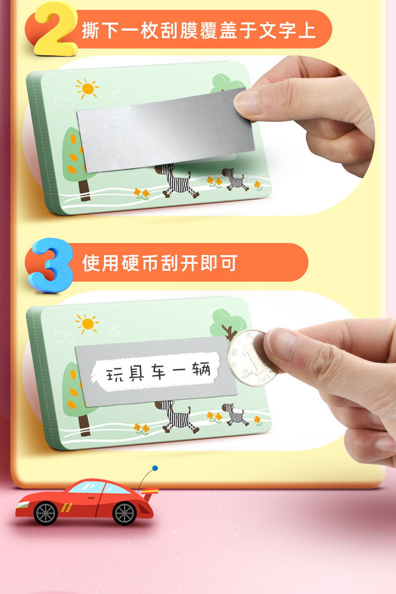 • [종이 50매] 스크래치 보상 카드 - 어린 시절 (스크래치 카드 + 마커 보내기)