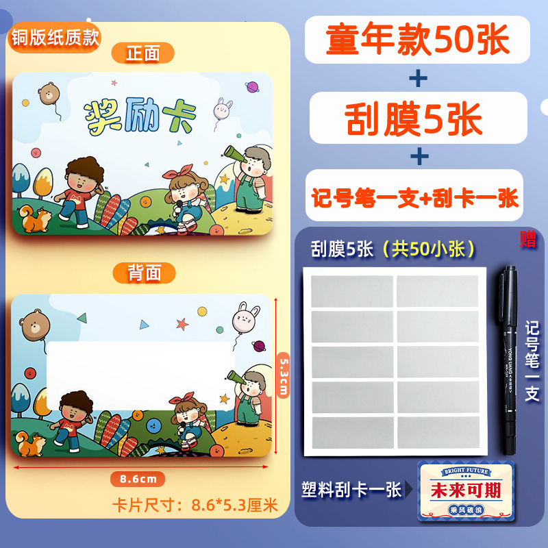 Xin Guo 스크래치 카드 초등학교 교사 보상 카드 어린이 행운의 Rffle 티켓 가족 DIY 크리에이티브 포인트 카드스토어 가기