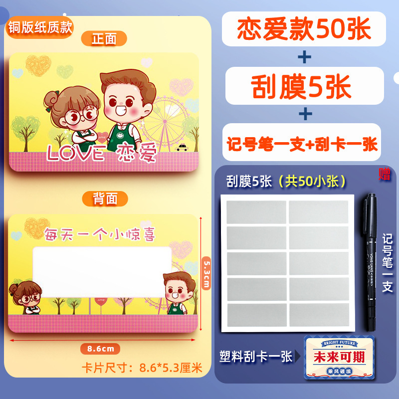 • [종이 50매] 행운의 스크래치 카드 - 사랑 (무료 스크래치 카드 + 마커)