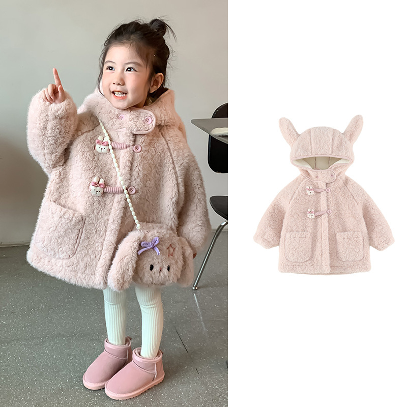 여자 겨울 코트 2025 새로운 스타일 아기 소녀 모직 스웨터 어린이 겨울 양털 가을, 겨울상의스토어 가기