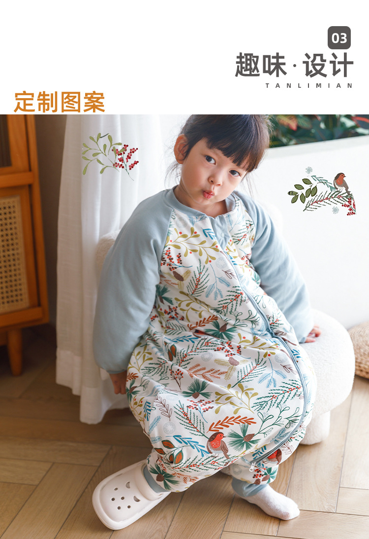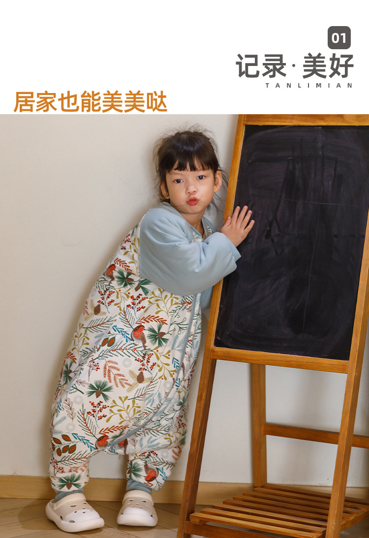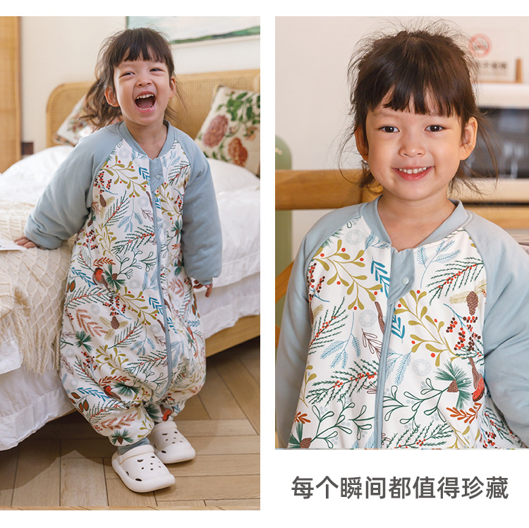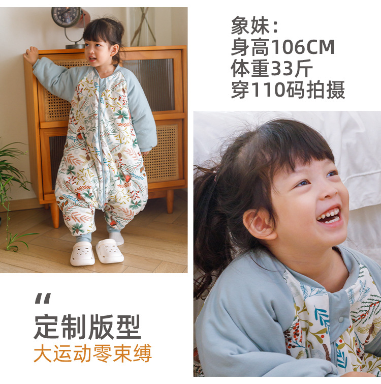 Huxibei 아기 잠자는 가방 가을과 겨울 Bev Cotton 아기 다리 분할 점프 수트 어린이 플러스 사이즈 유니버설 킥 방지 퀼트스토어 가기