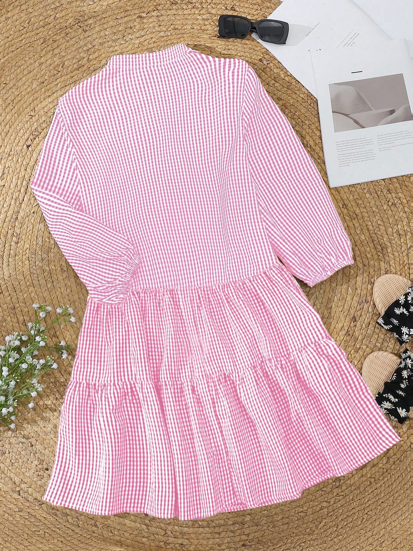 2024 유럽과 미국의 폭발 느슨한 격자 무늬 원피스 AliExpress 아마존 뜨거운 폭발 대외 무역 여성복