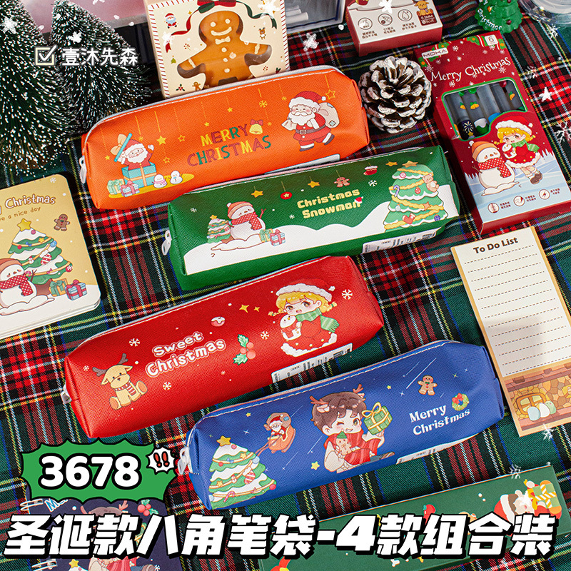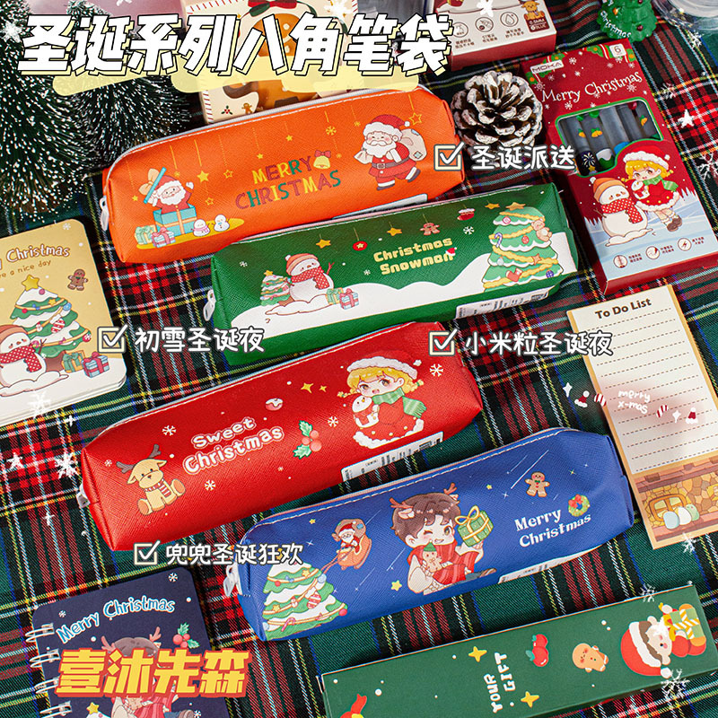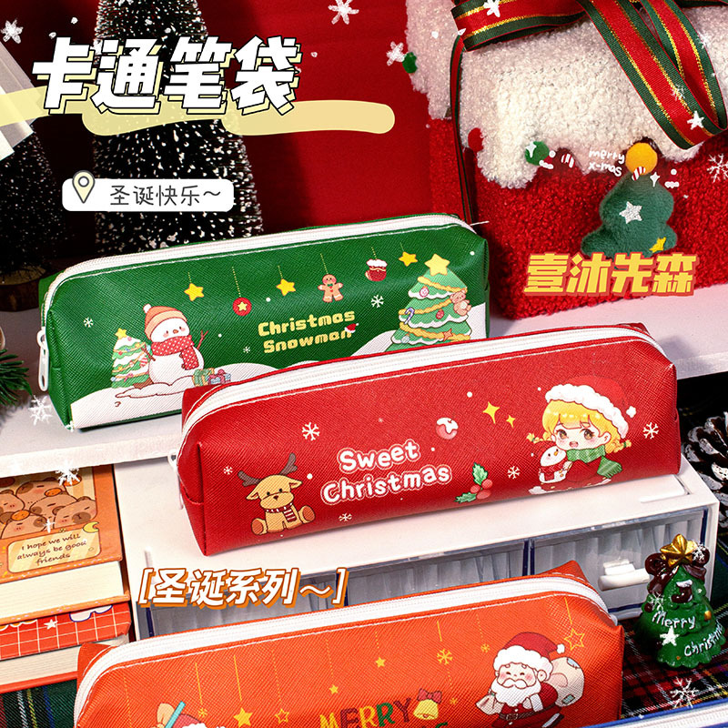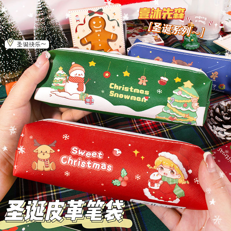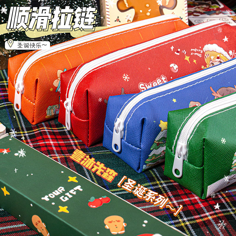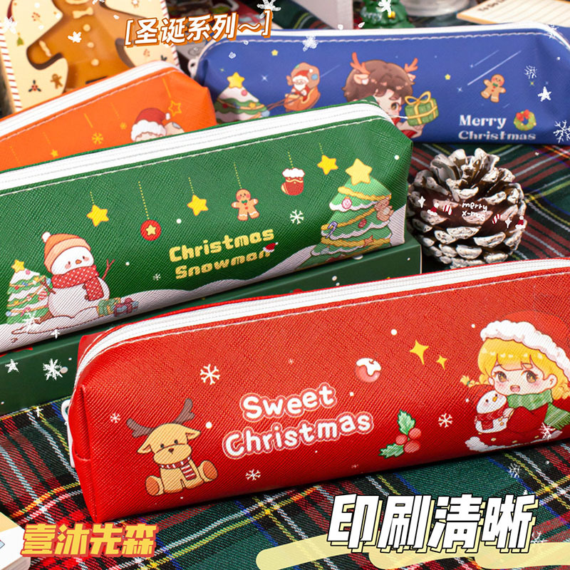 크리스마스 연필 케이스 학생 크리스마스 선물 크리스마스 작은 선물 연필 케이스 대용량 문구 케이스 PU 연필 케이스스토어 가기