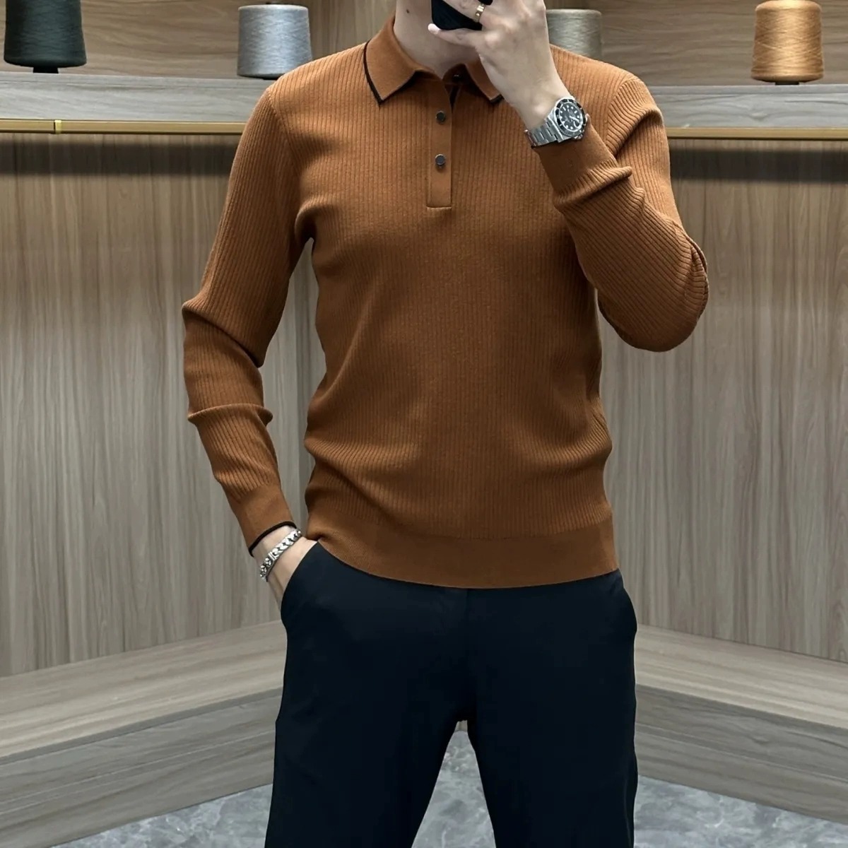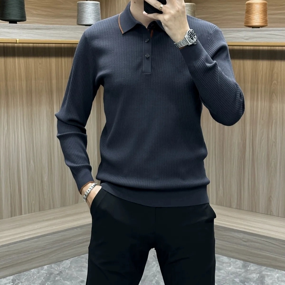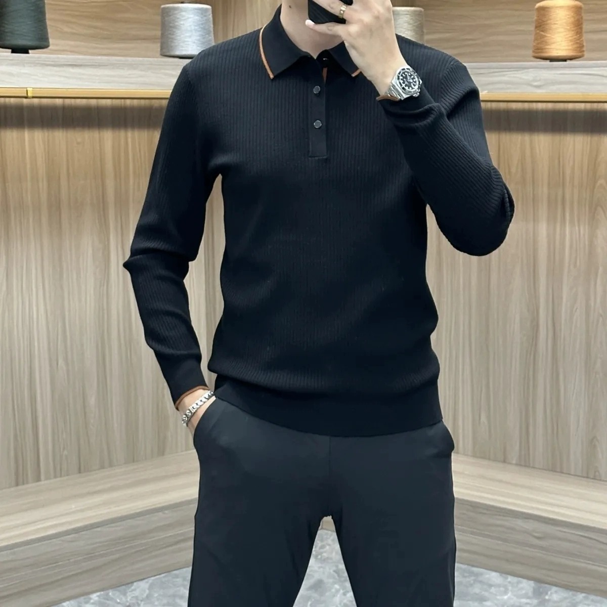 가을과 겨울 풀오버 폴로 셔츠 최고 남성 패션 옷깃 캐주얼 단색 비즈니스 남성용 하이 엔드 슬림 핏 스웨터