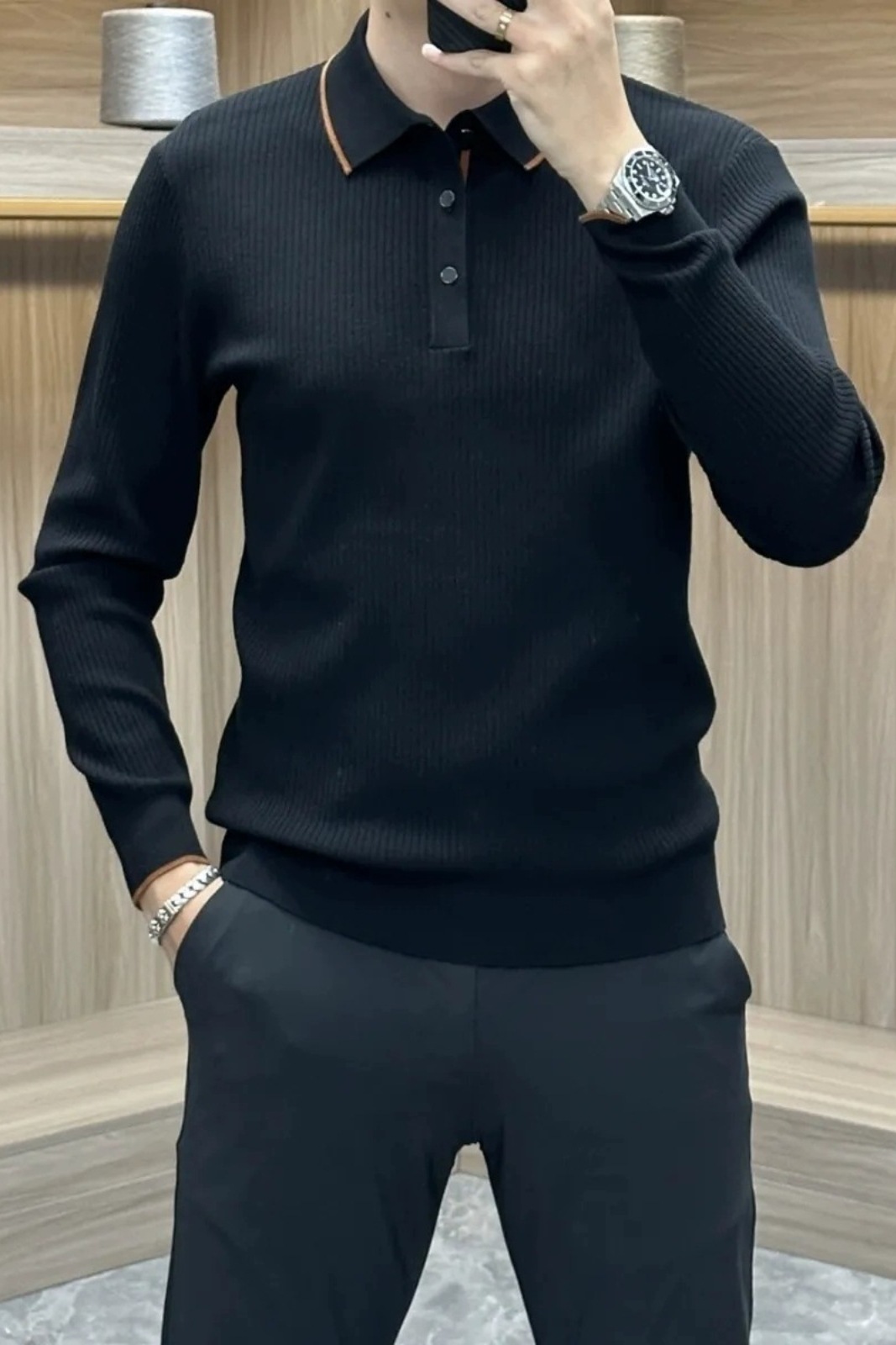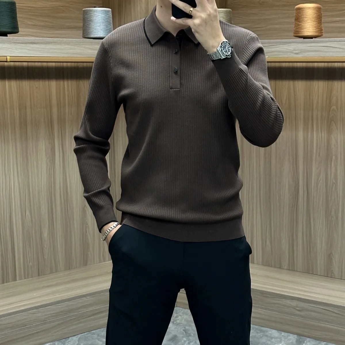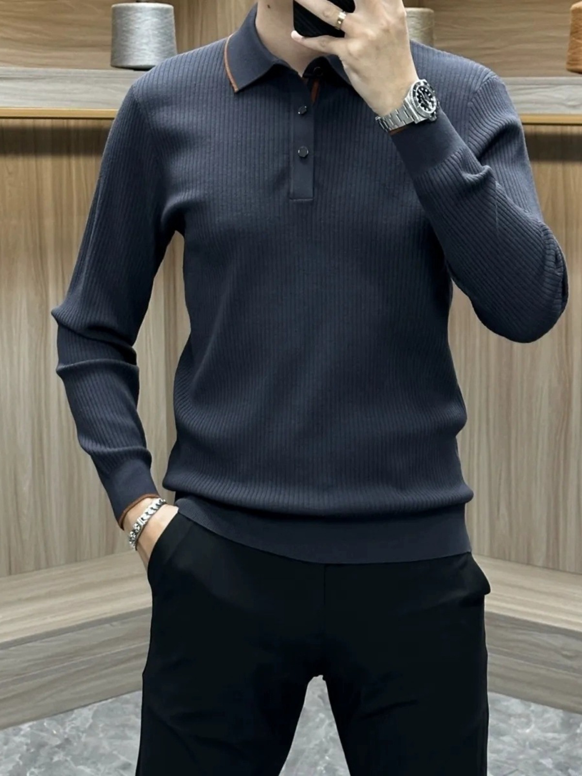 가을과 겨울 풀오버 폴로 셔츠 최고 남성 패션 옷깃 캐주얼 단색 비즈니스 남성용 하이 엔드 슬림 핏 스웨터