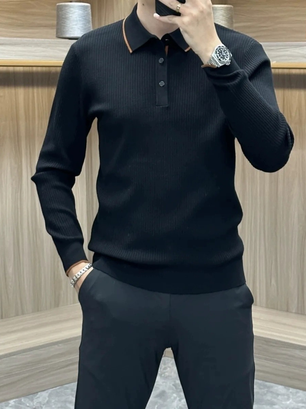 가을과 겨울 풀오버 폴로 셔츠 최고 남성 패션 옷깃 캐주얼 단색 비즈니스 남성용 하이 엔드 슬림 핏 스웨터스토어 가기