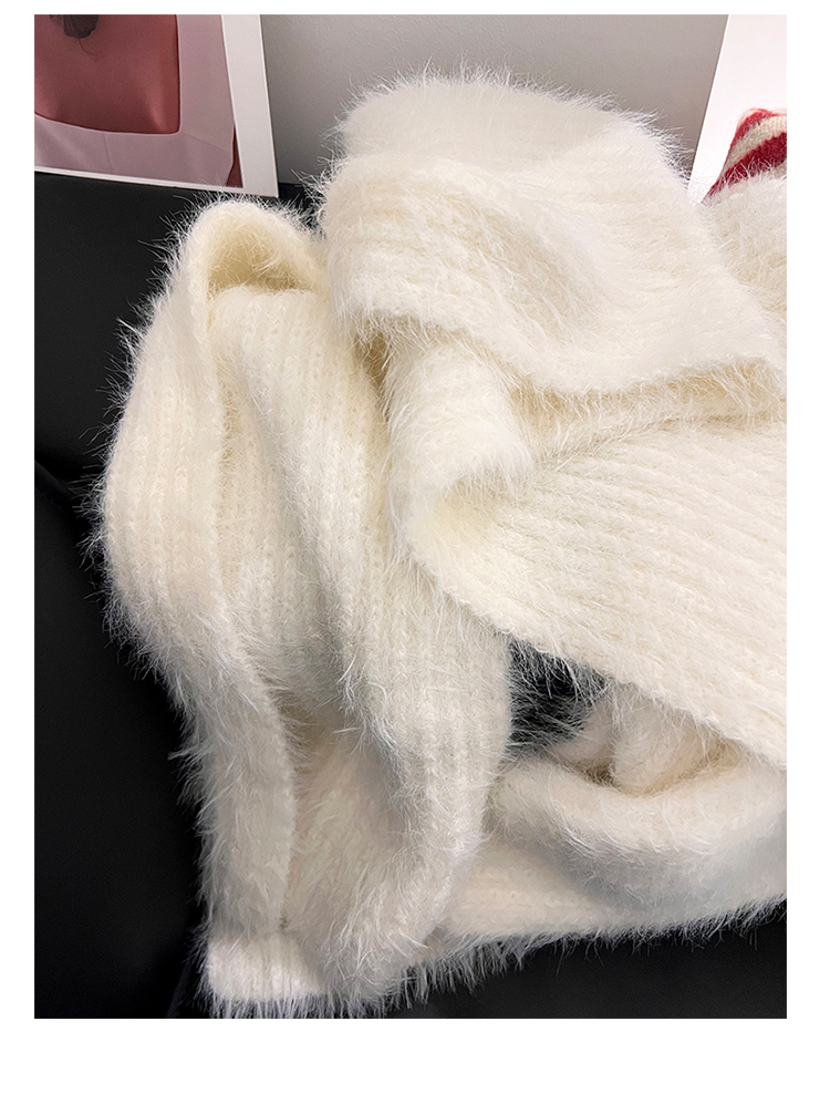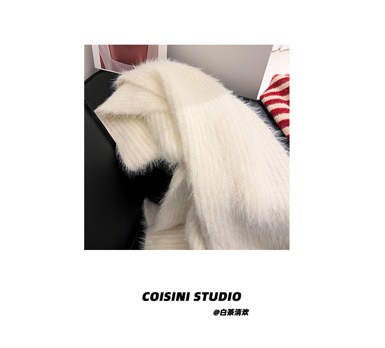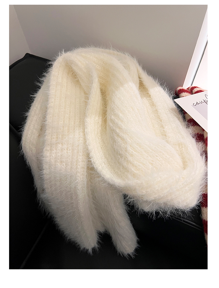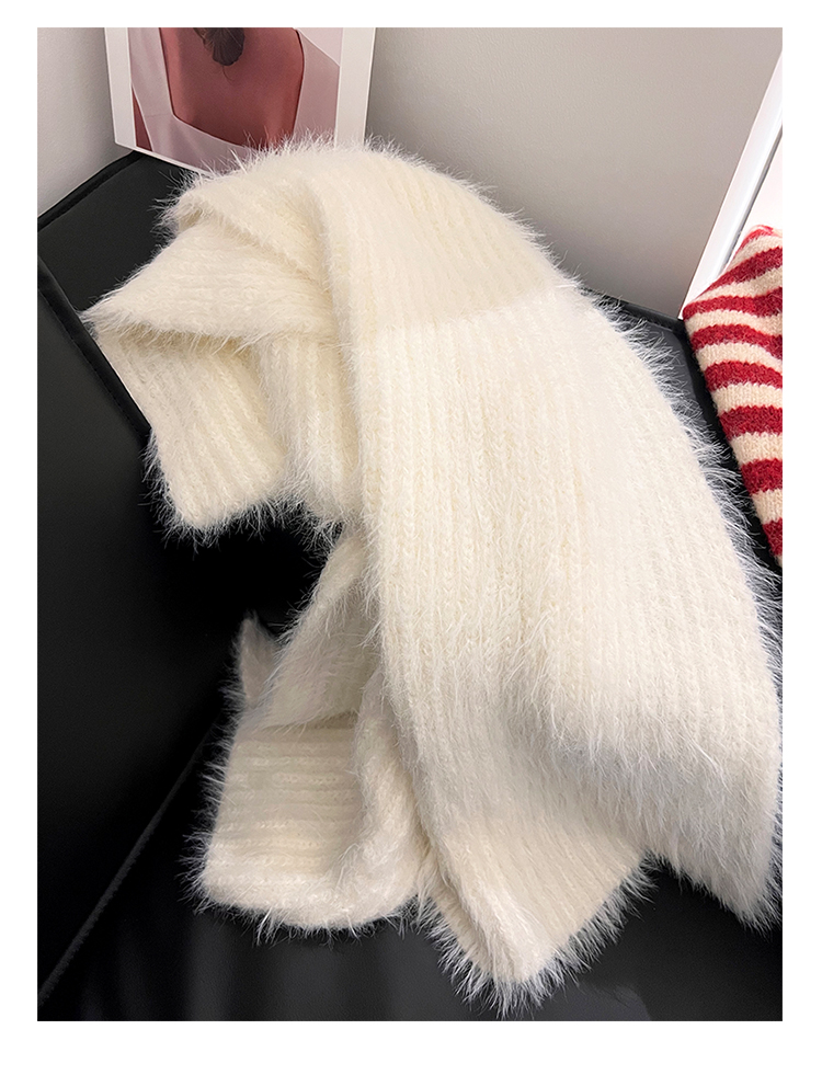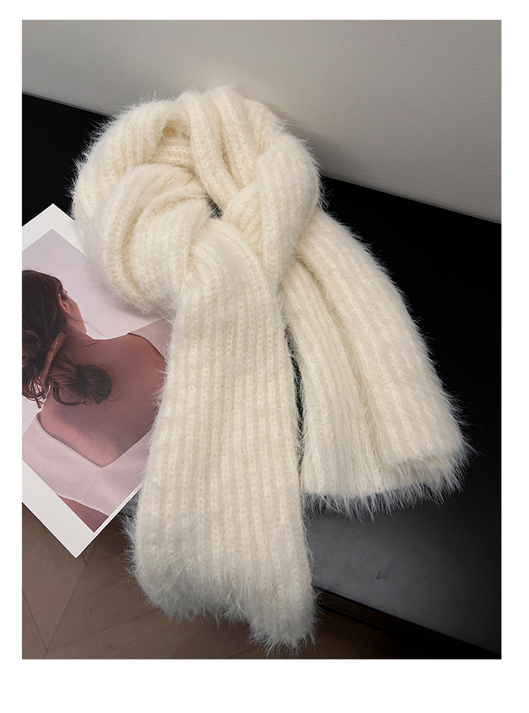 2024 새로운 부드러운 바람 부드러운 찹쌀 흰색 모조 밍크 울 니트 스카프 여성의 가을과 겨울 따뜻한 올 매치 하이 엔드 스카프스토어 가기