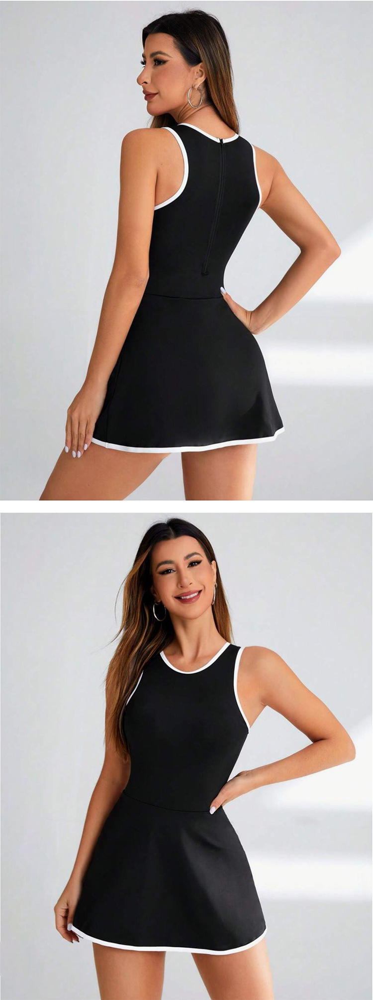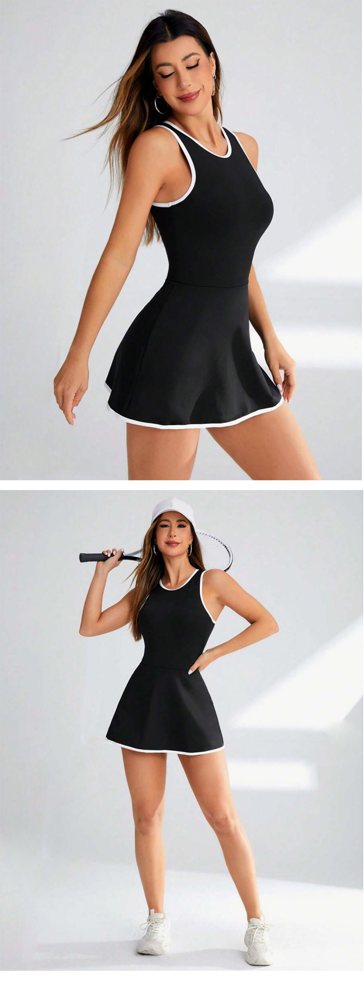 테니스 스포츠 원피스 슬림 핏 패션 가슴 패드 피트니스 세트 여성 민소매 배드민턴 의류 골프 의류스토어 가기