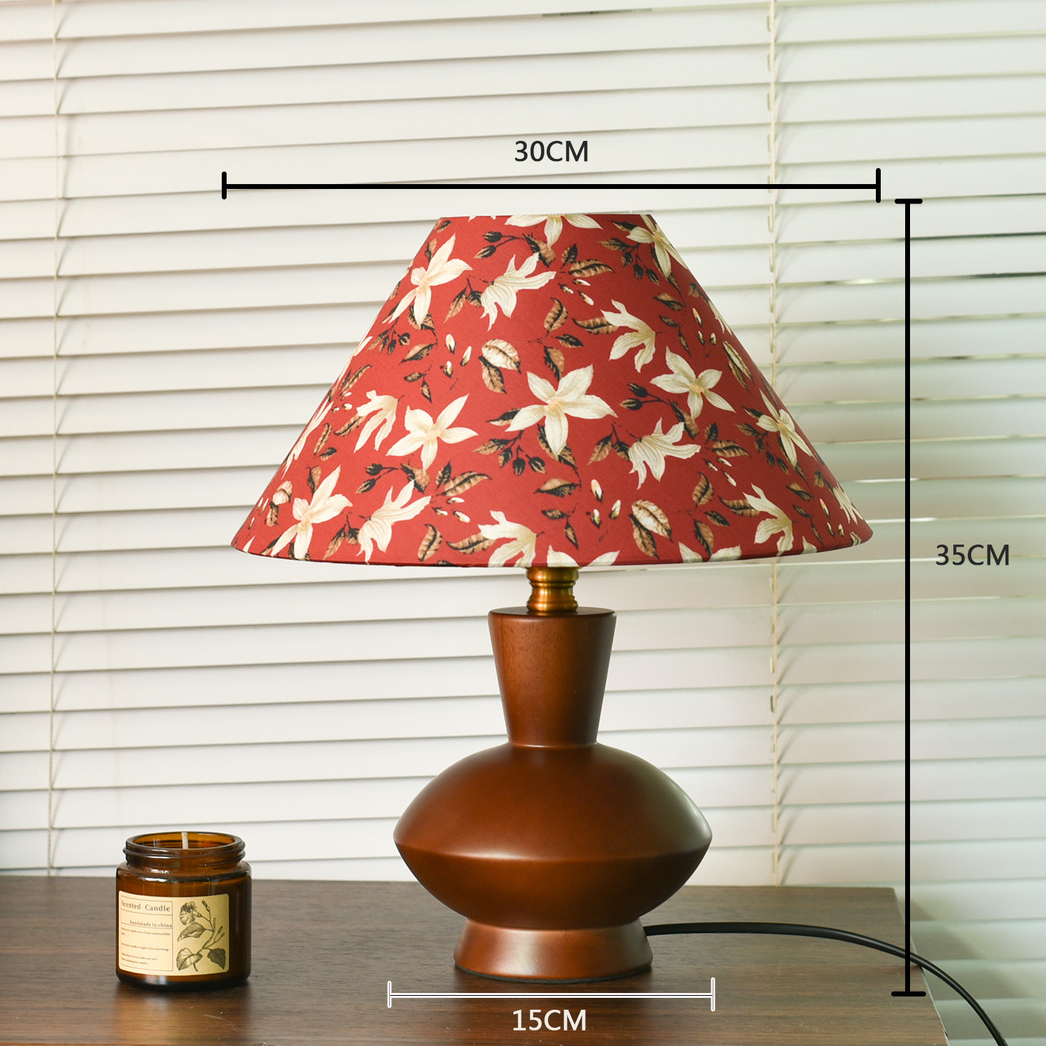 새로운 상하이 스타일 레트로 스타일 테이블 램프 침실 프랑스 중세 인쇄 디자인 거실 측면 캐비닛 장식 단단한 나무 침대 옆 램프