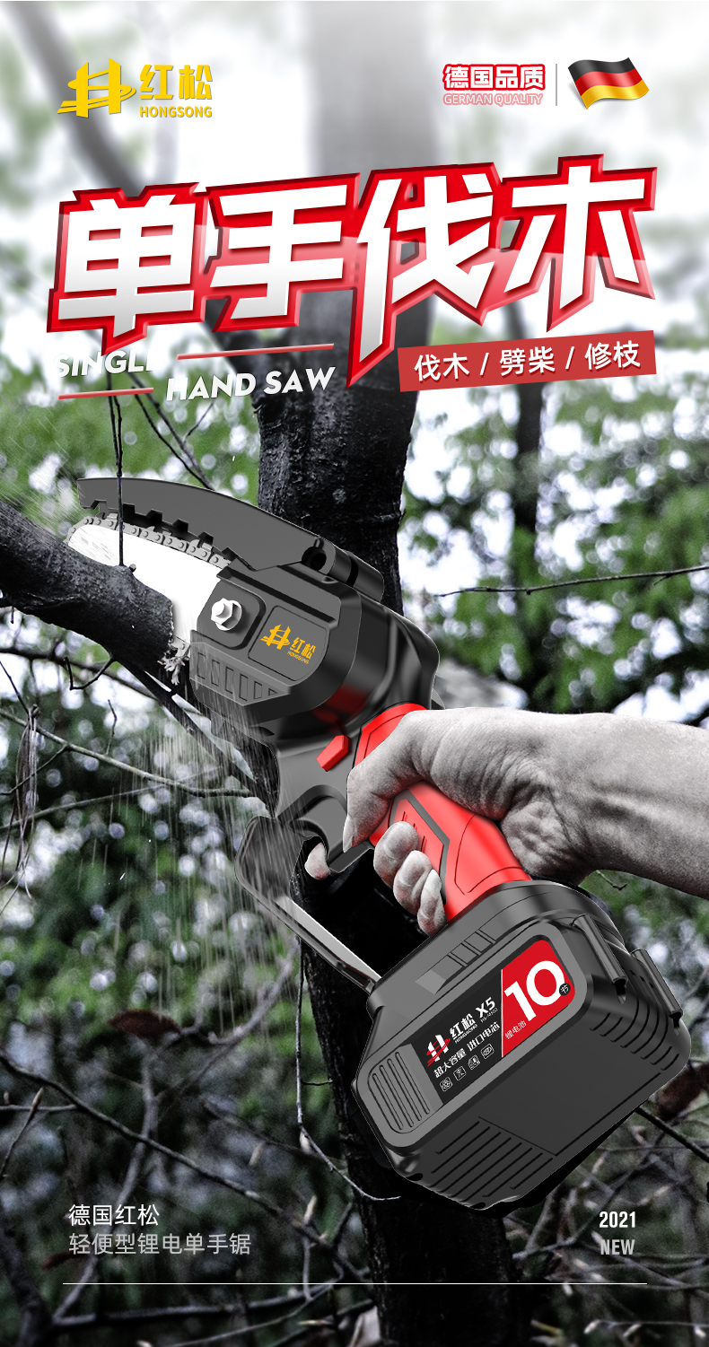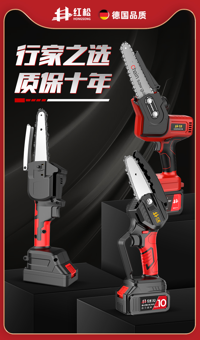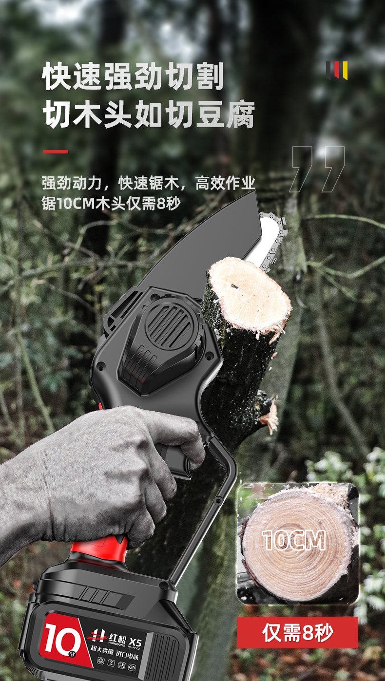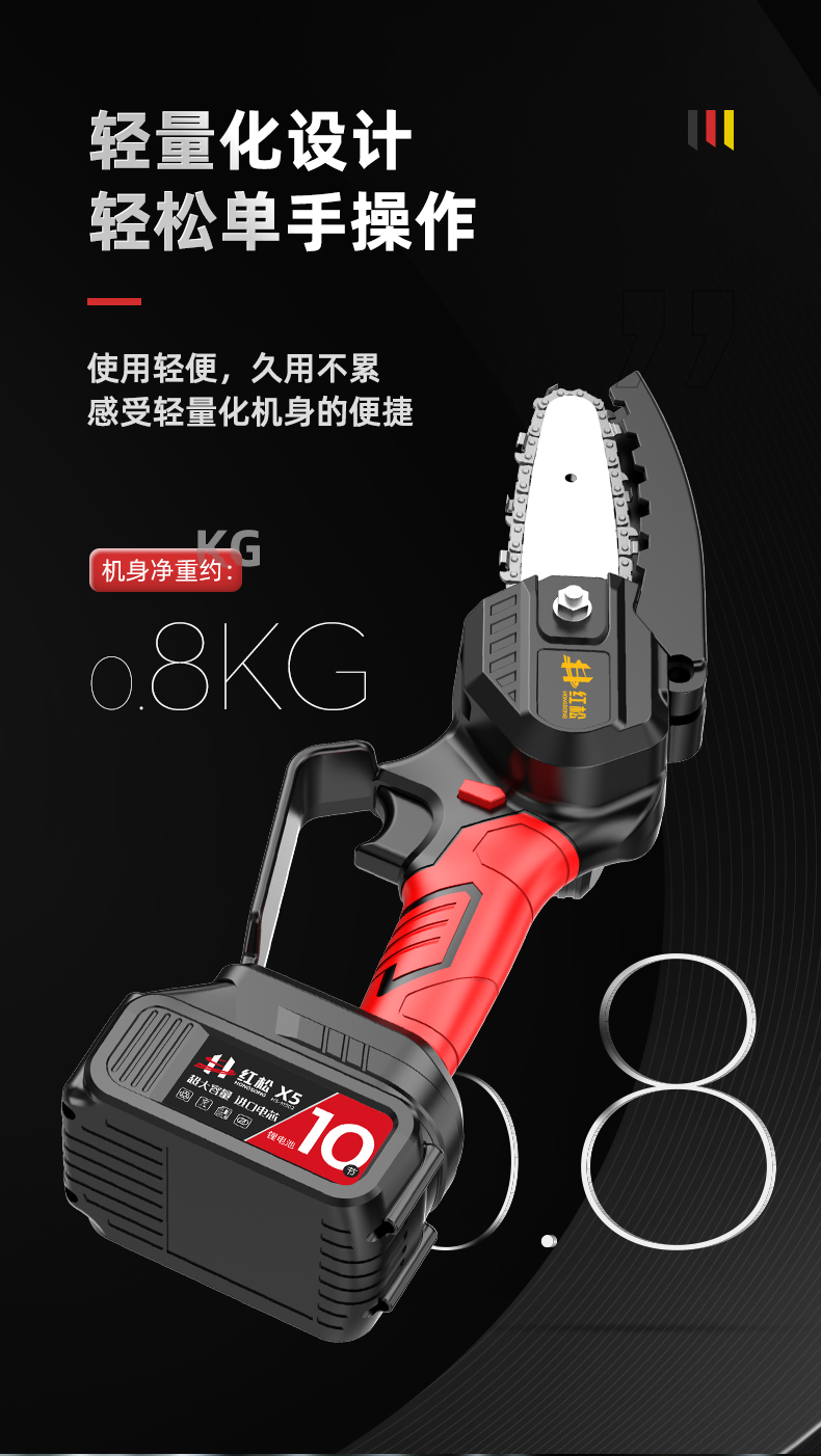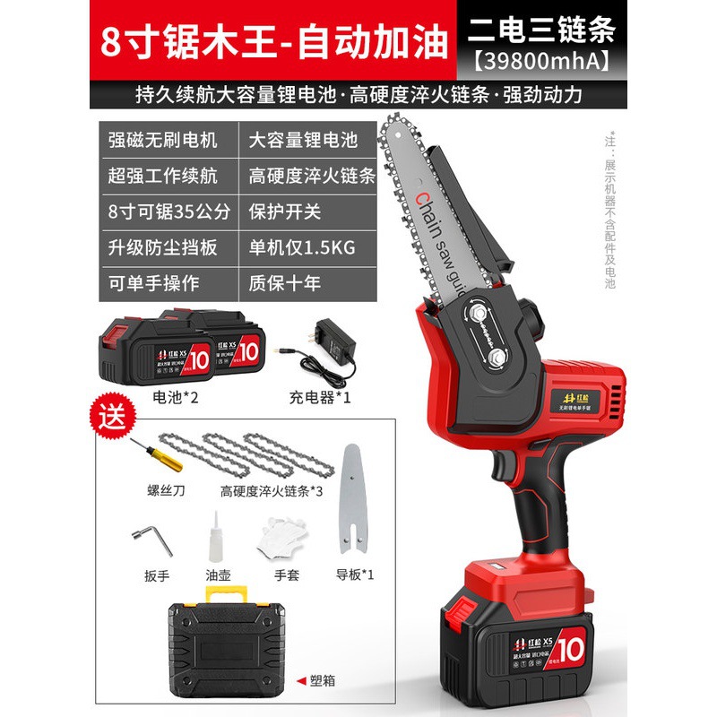 독일 빨간 소나무 전기 톱 가정용 소형 핸드 헬드는 목재 충전식 리튬 배터리 한 손으로 야외 벌목 톱나무를 보았다