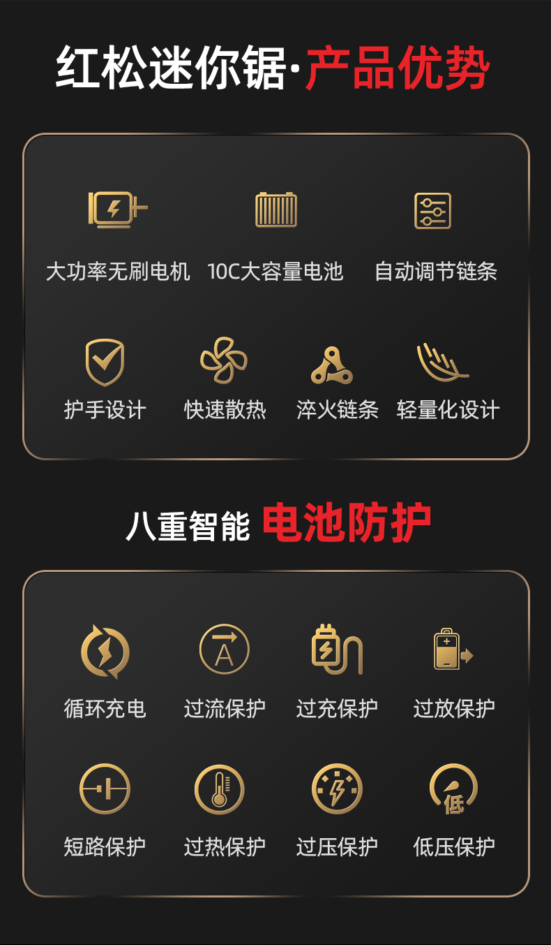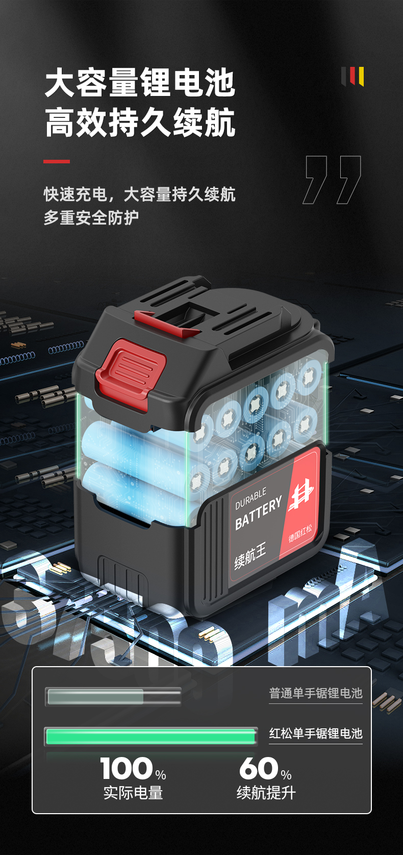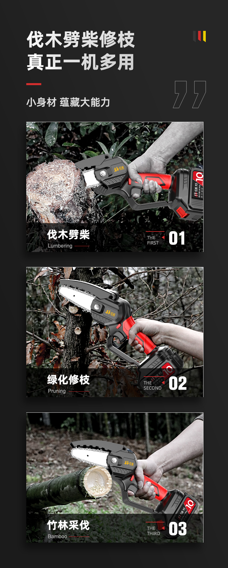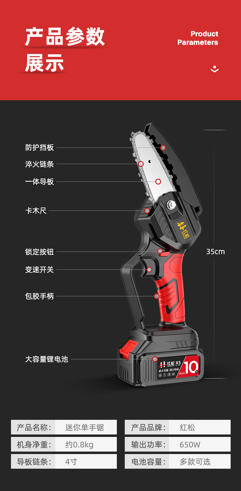 독일 빨간 소나무 전기 톱 가정용 소형 핸드 헬드는 목재 충전식 리튬 배터리 한 손으로 야외 벌목 톱나무를 보았다