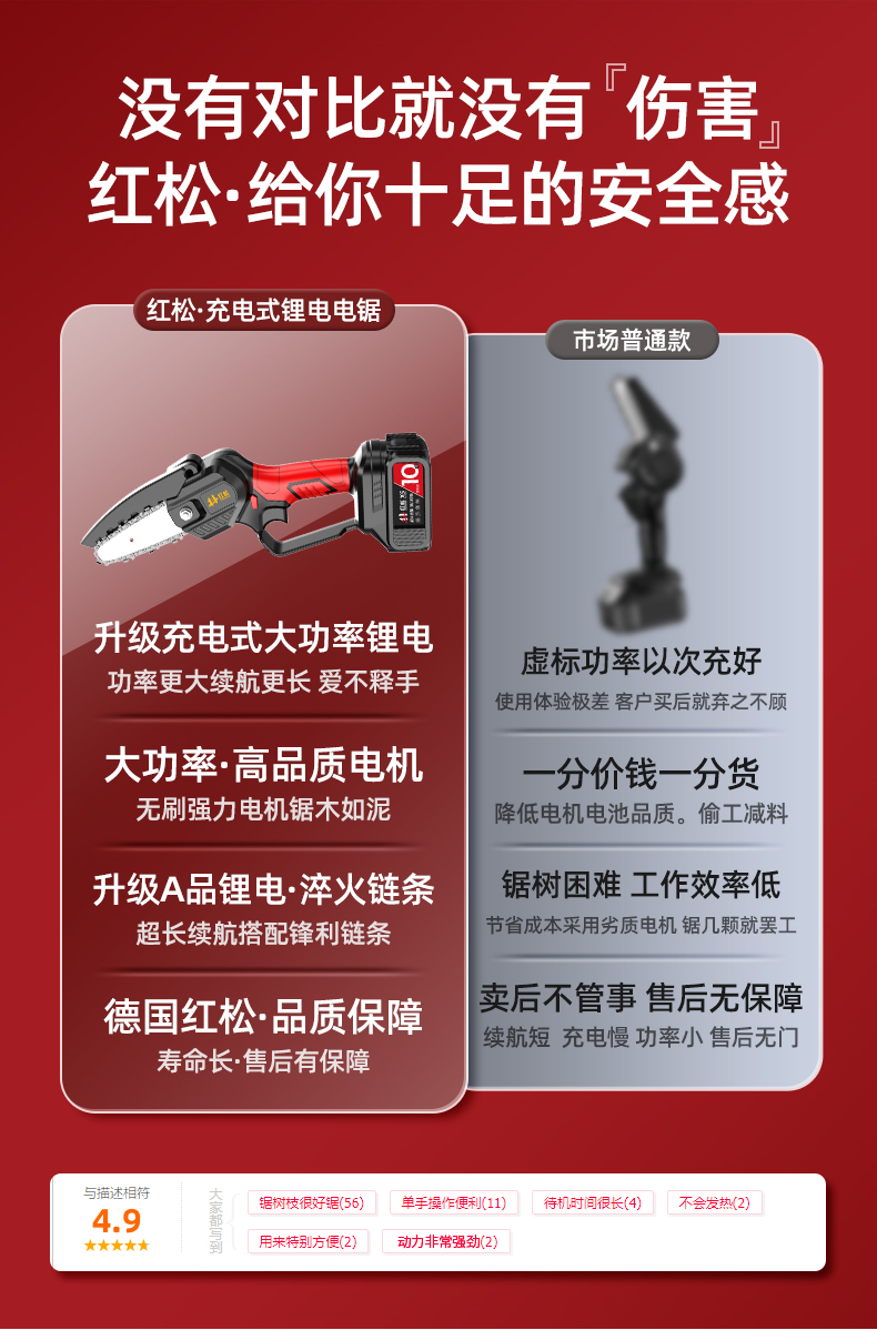 독일 빨간 소나무 전기 톱 가정용 소형 핸드 헬드는 목재 충전식 리튬 배터리 한 손으로 야외 벌목 톱나무를 보았다스토어 가기