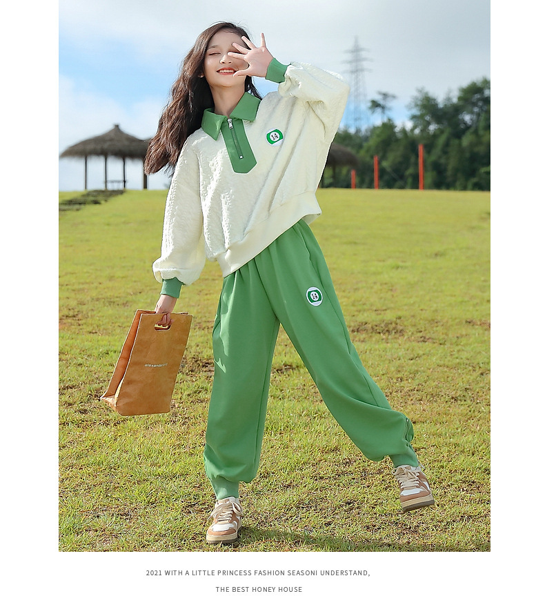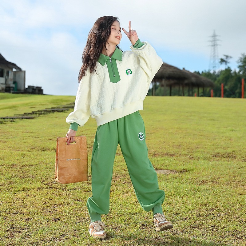 여자 레저 스포츠 세트 2024 새로운 어린이 유행 땀 바지 소녀 투피스 아동복스토어 가기