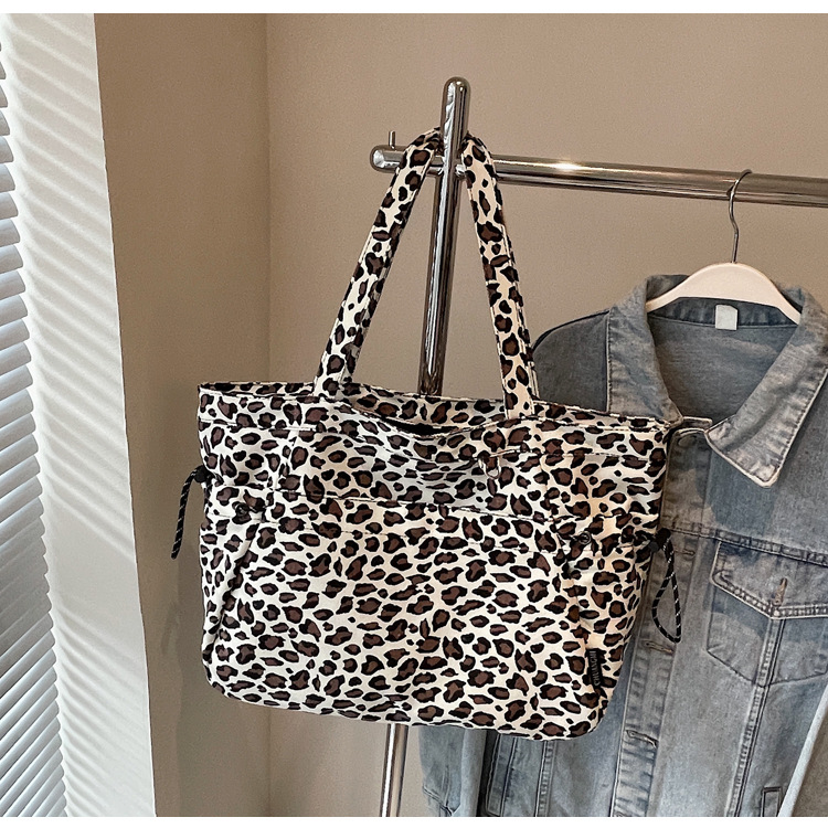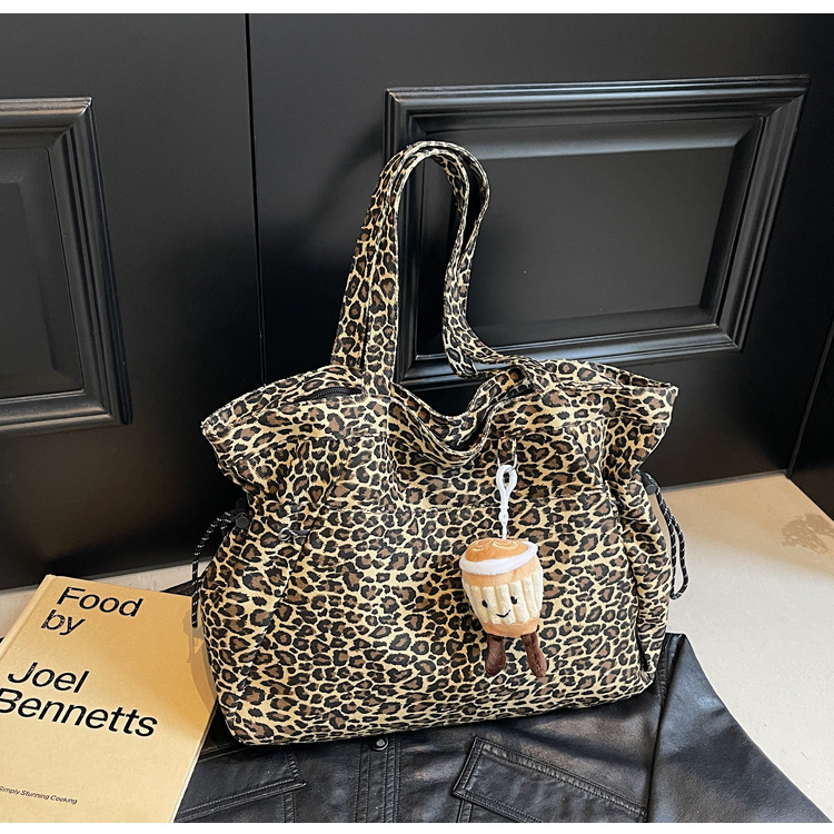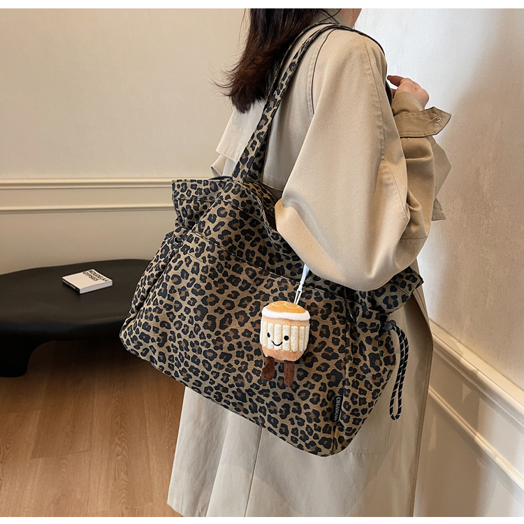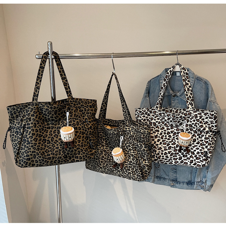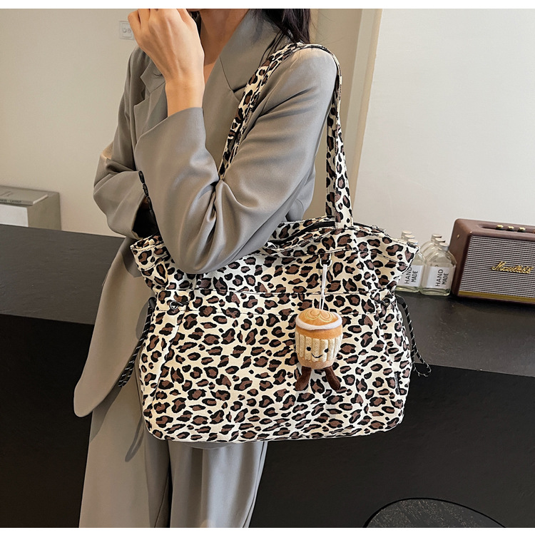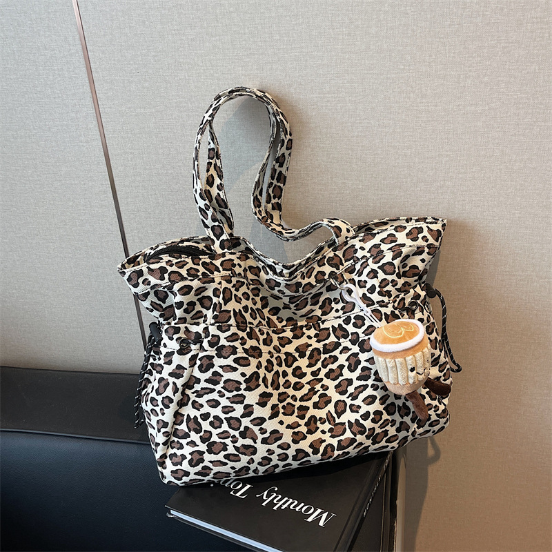 레오파드 무늬 캔버스 토트 백 여성 대용량 가방 2024 새로운 유행 휴대용 통근 가방 올 매치 숄더 미라 백