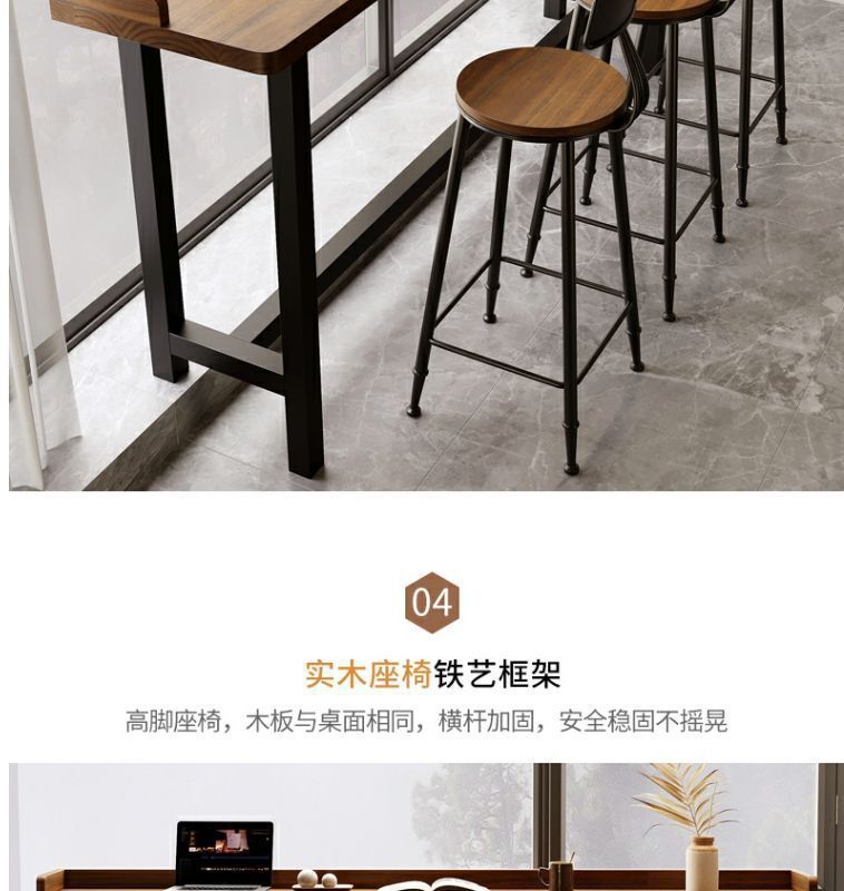 발코니 바 테이블 가구 창 좁은 테이블에 의해 간단한 단단한 나무 긴 테이블 높고 낮은 발 긴 테이블 높은 발 테이블 및 의자스토어 가기