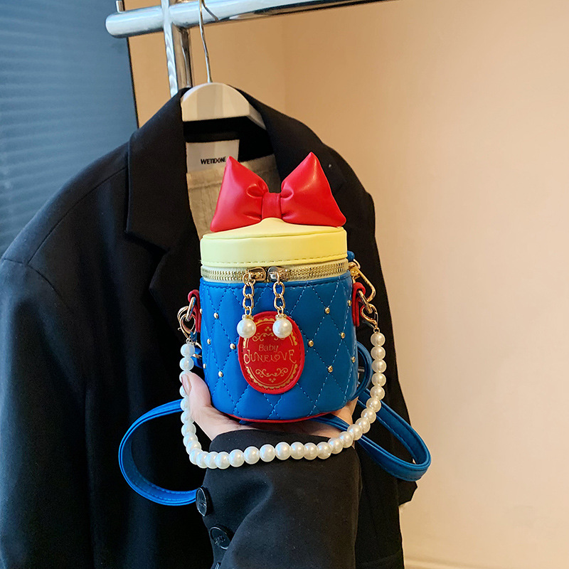 어린이 액세서리 가방 새로운 한국 패션 리벳 자수 다이아몬드 활 어깨 크로스 바디 백 패션 버킷 백