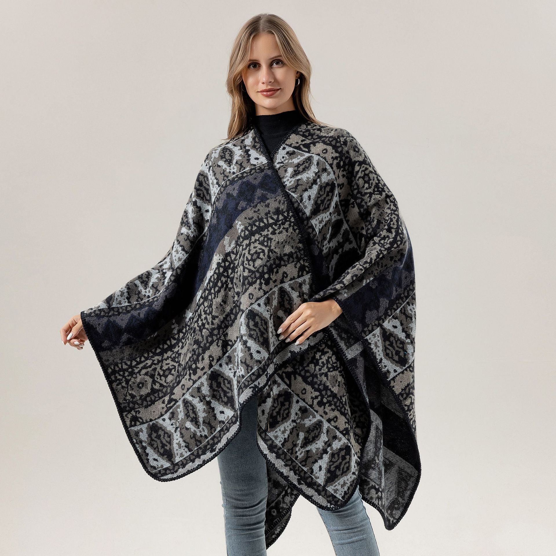 간단한 2024 틈새 모방 캐시미어 다크 스플릿 케이프 가을과 겨울 따뜻한 유니섹스 양면 민족 스타일 목도리 스카프