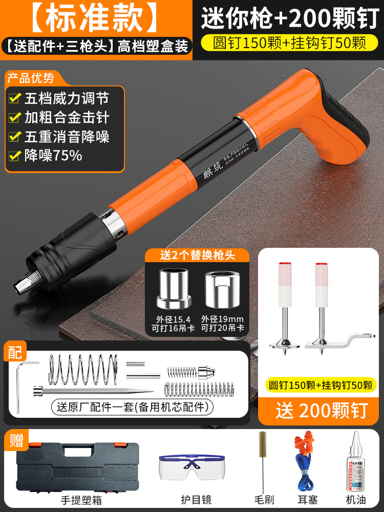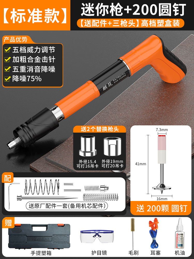 • [표준 모델] 미니 건 + 정원 못 200개(상자에 포장) [5단계 파워 + 3건 헤드 + 75% 소음 감소]