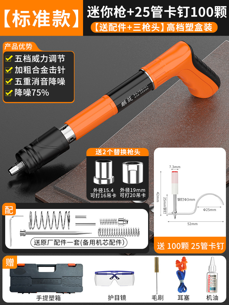 • [표준 모델] 미니 건 + 정원 못 100개(상자에 포장) [5단계 파워 + 3건 헤드 + 75% 소음 감소]