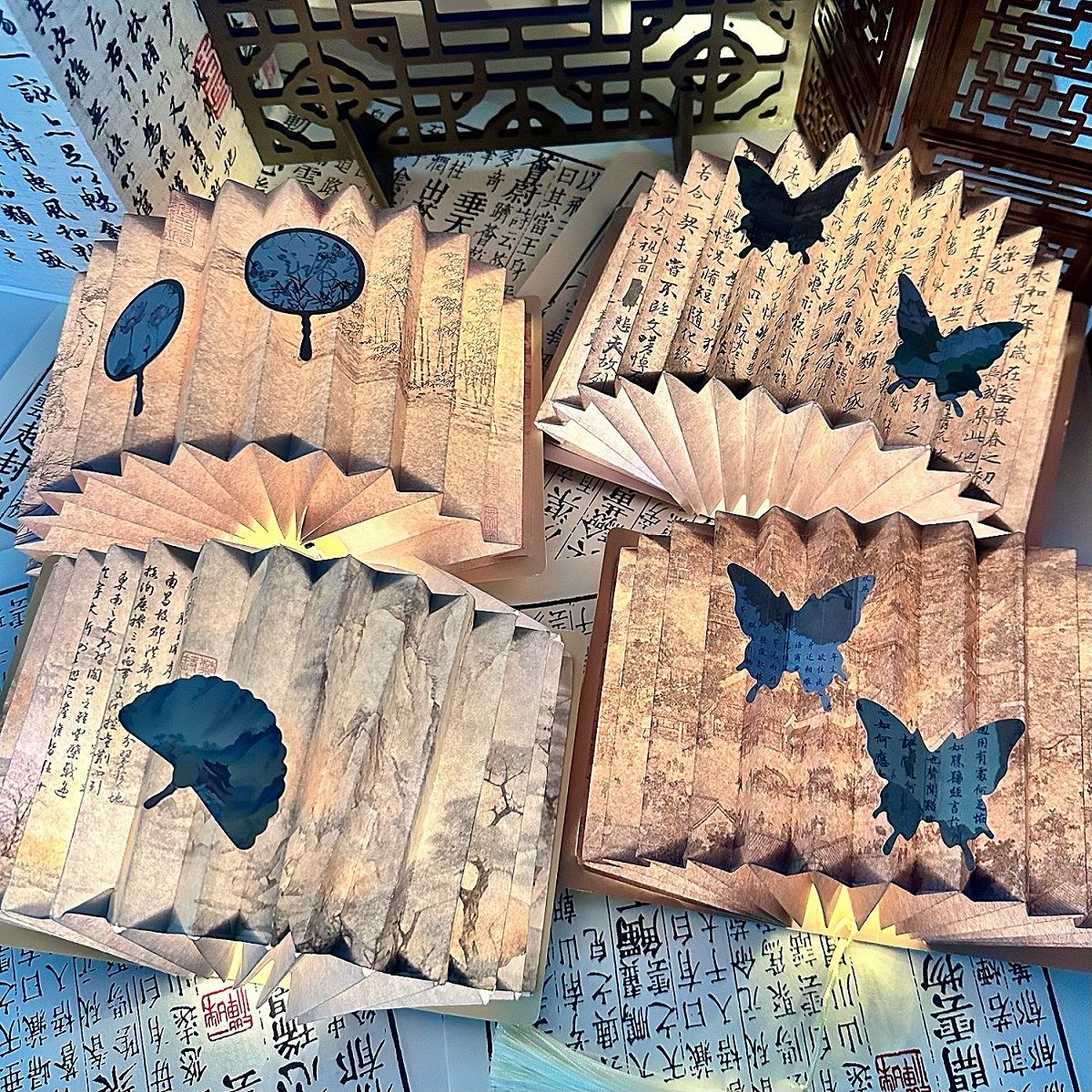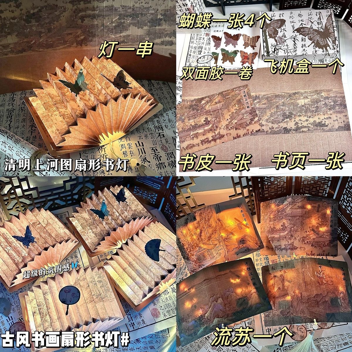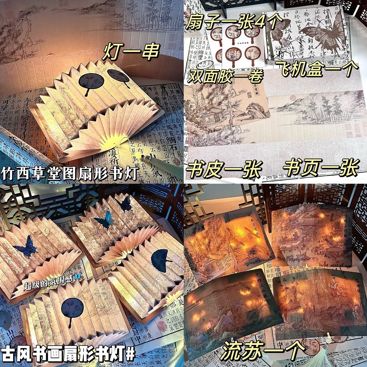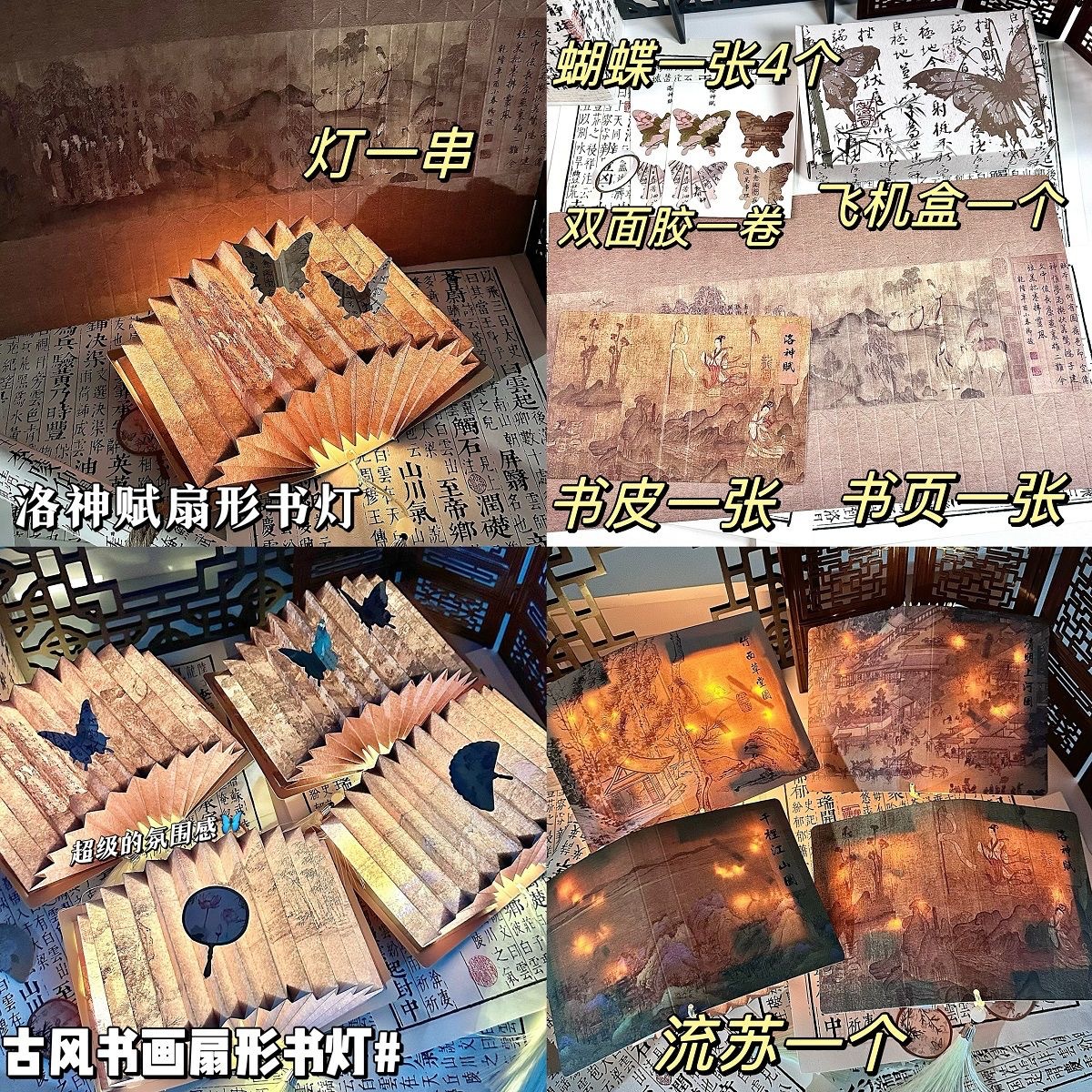 골동품 서예 DIY 팬 모양의 책 램프 Tanabata 고급 분위기 만화 책 접히는 밤 빛 생일 친구 보내기스토어 가기