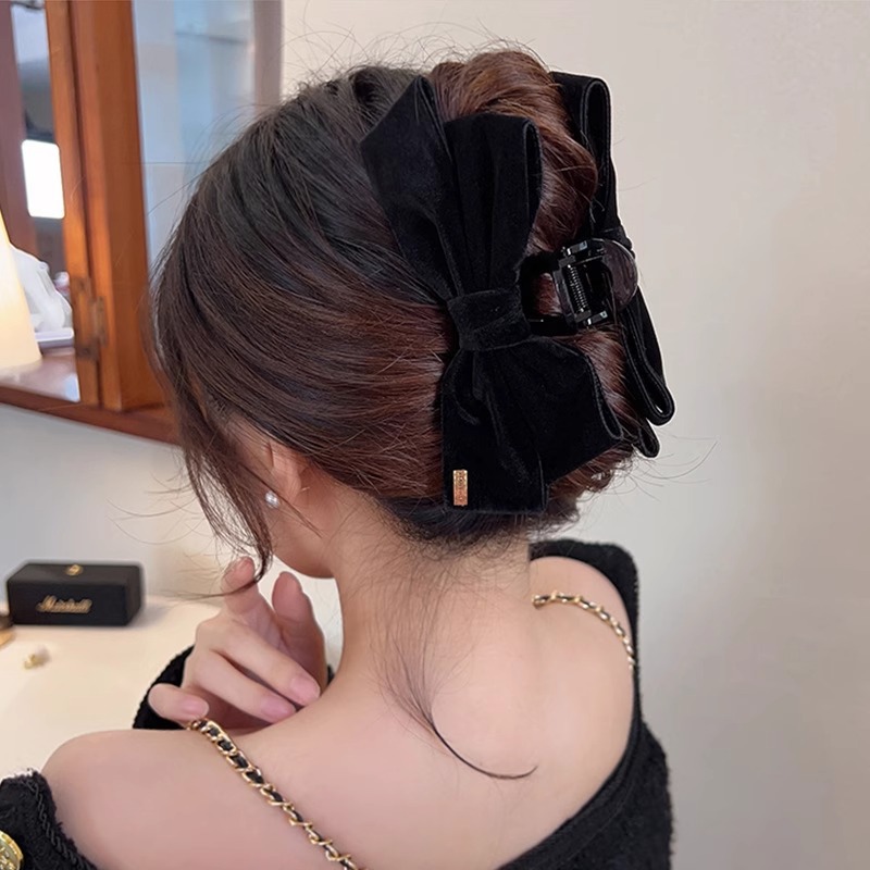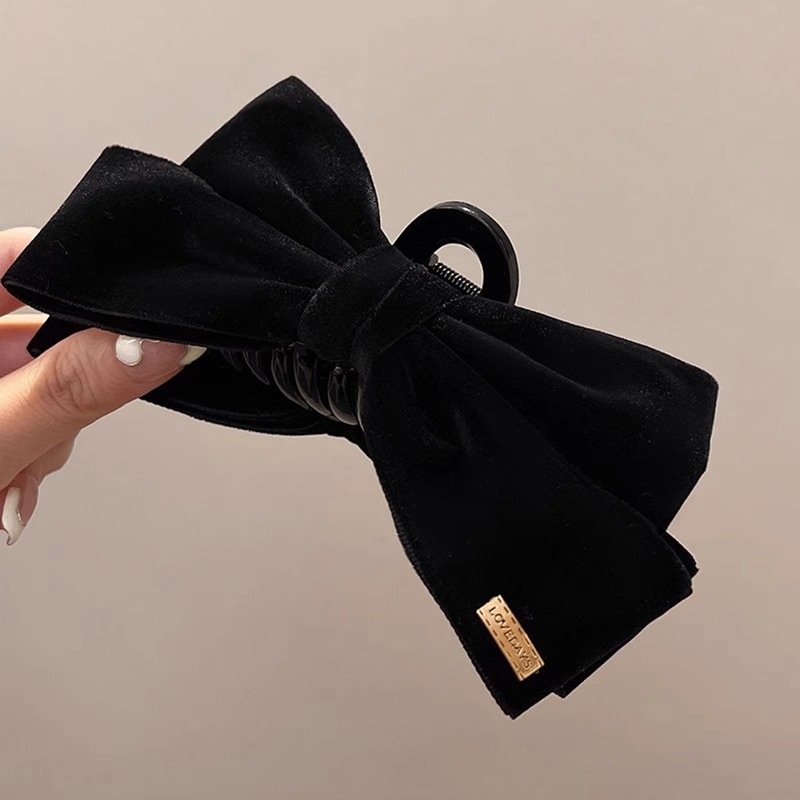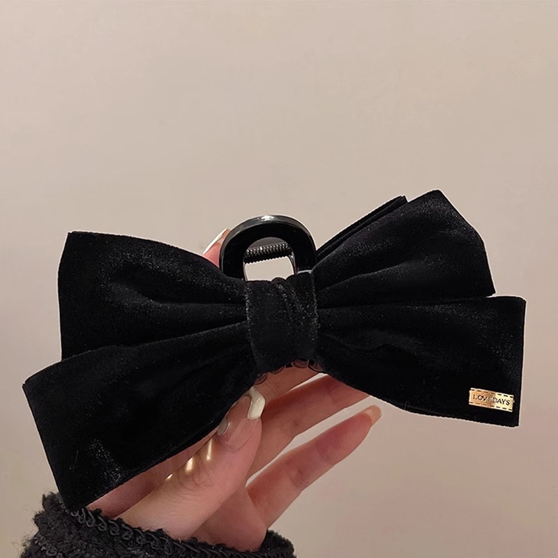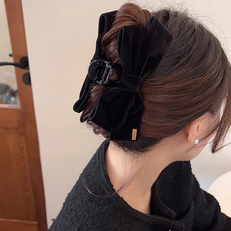 한국식 레트로 벨벳 활 머리 대형 그랩 클립 올 매치 여성을위한 우아한 하이 엔드 간단한 원단 헤어핀스토어 가기