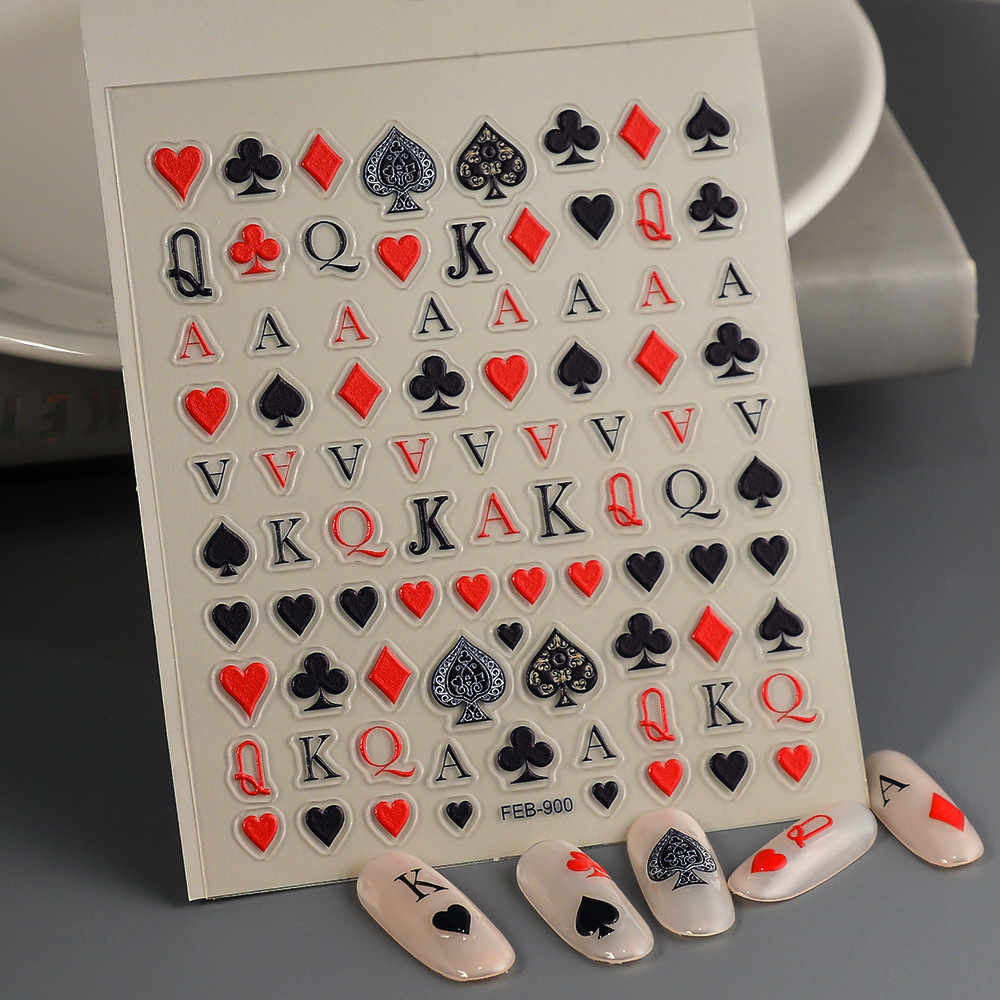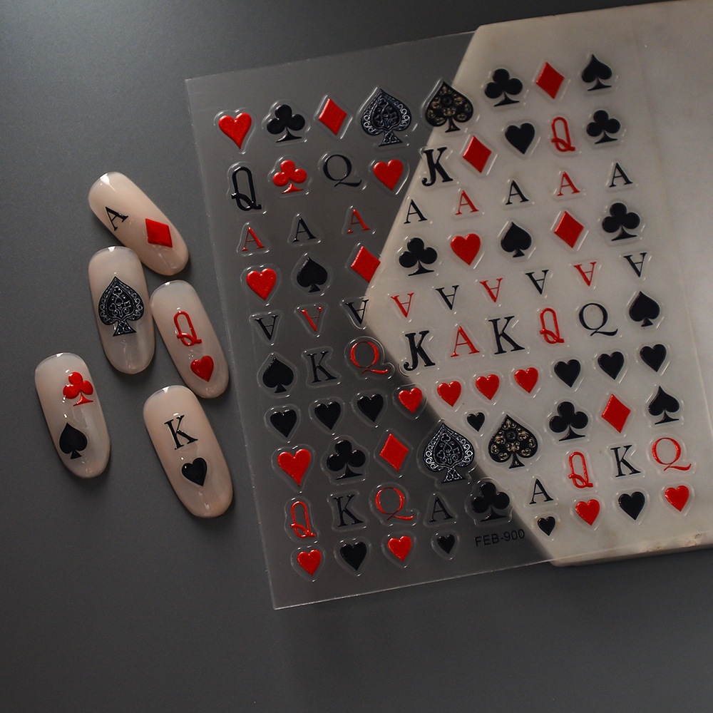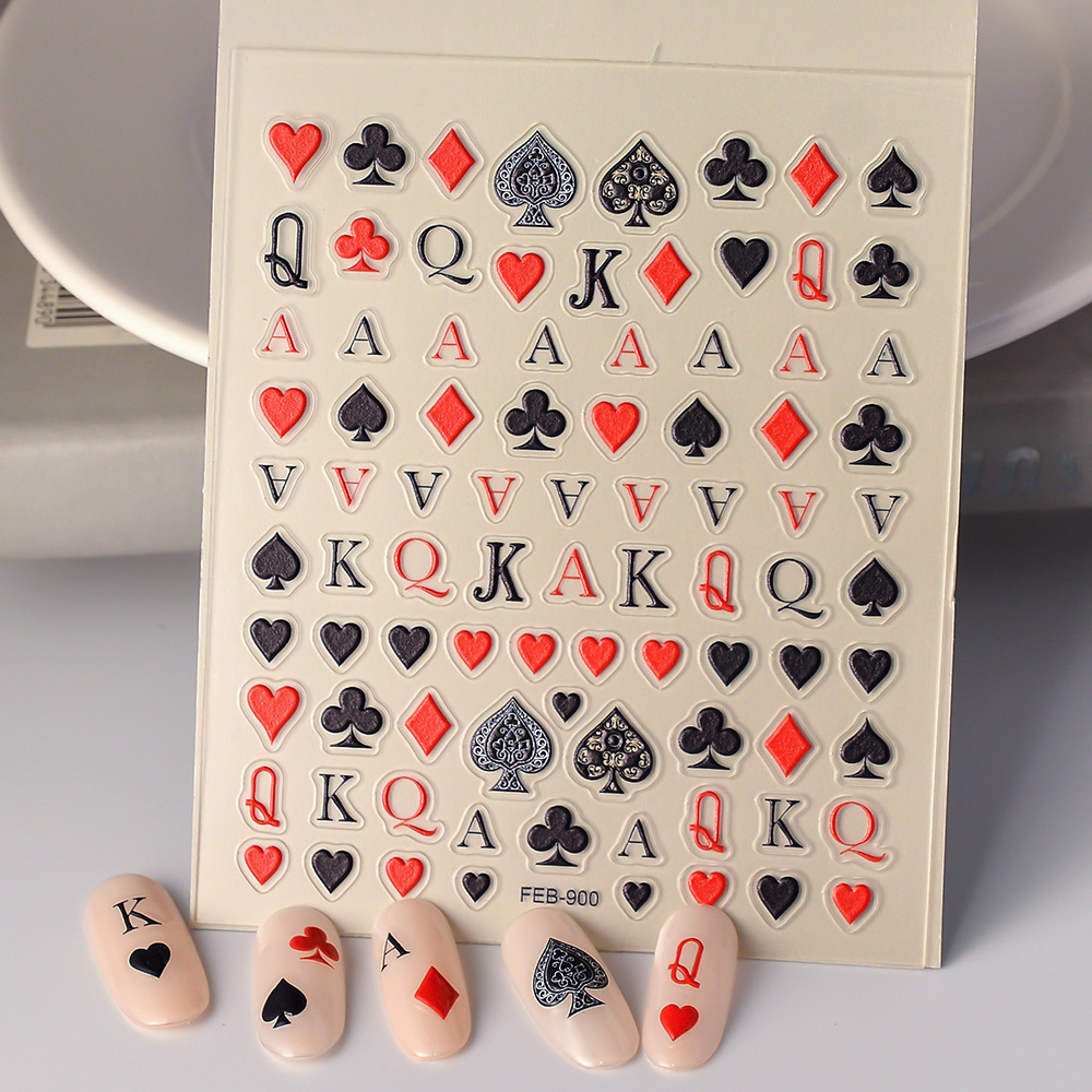 국경 간 새로운 포커 네일 아트 스티커 포커 블랙과 레드 러브 릴리프 네일 스티커 매화 꽃 K 자체 포함 접착제