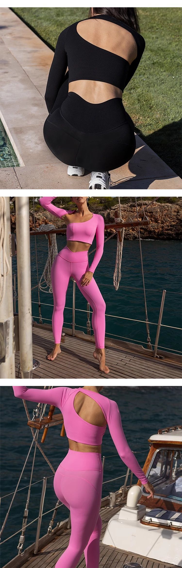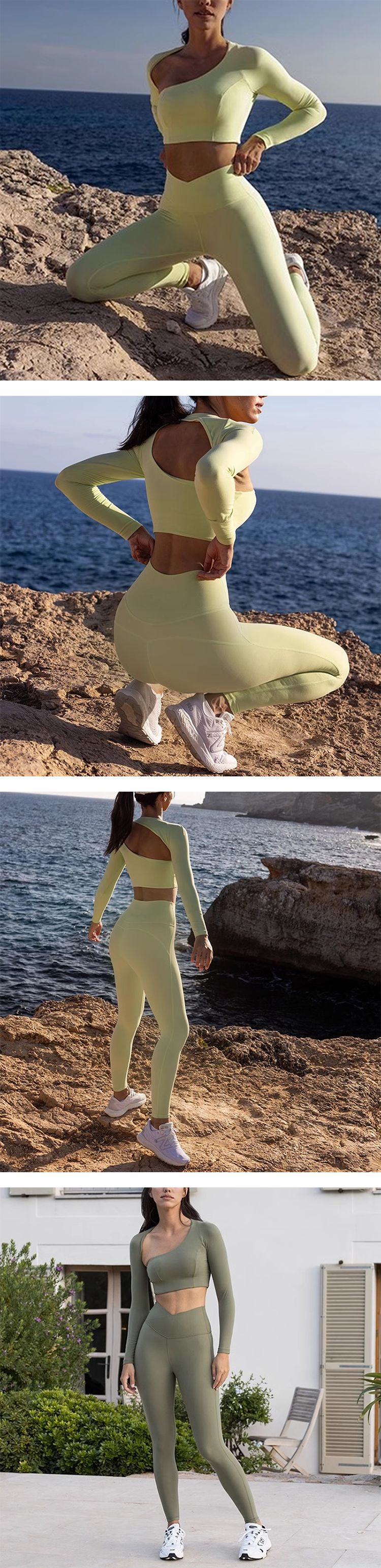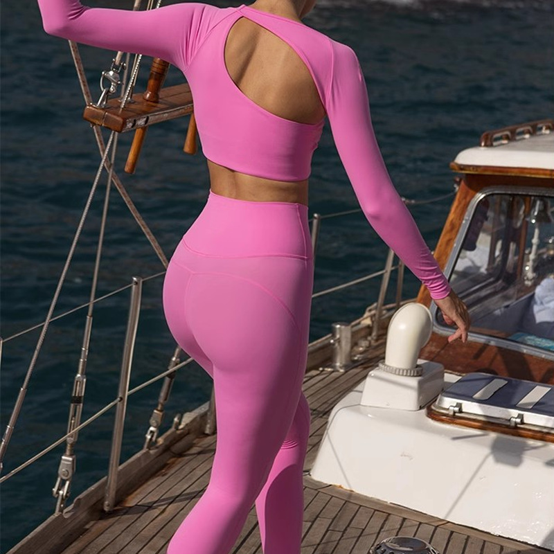 국경을 넘나 드는 유럽과 미국의 섹시한 불규칙한 빈 요가 세트 여성용 핫 걸스 숄더 필라테스 러닝 피트니스 의류스토어 가기