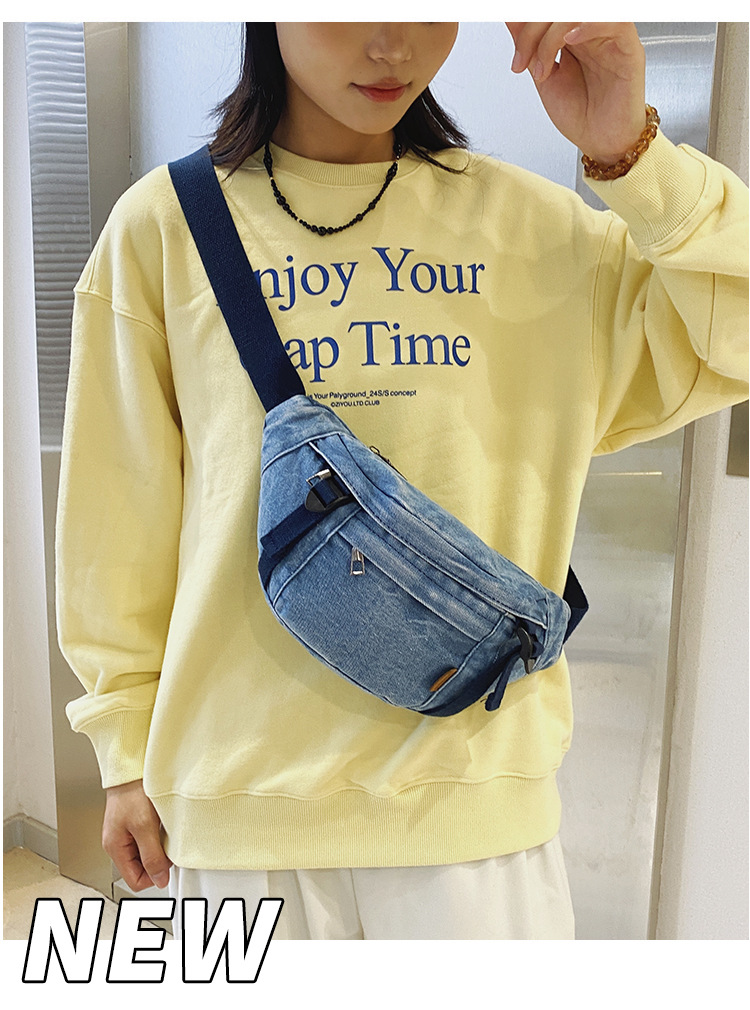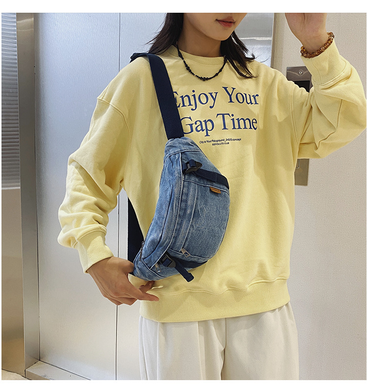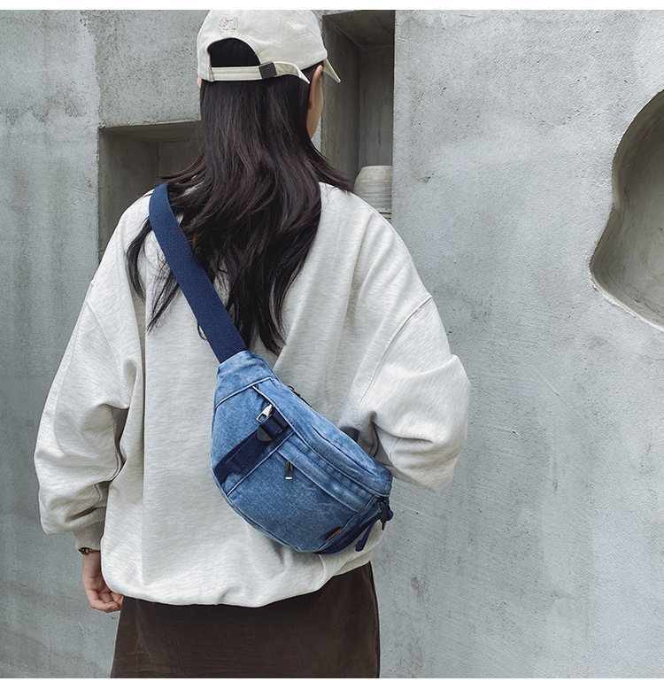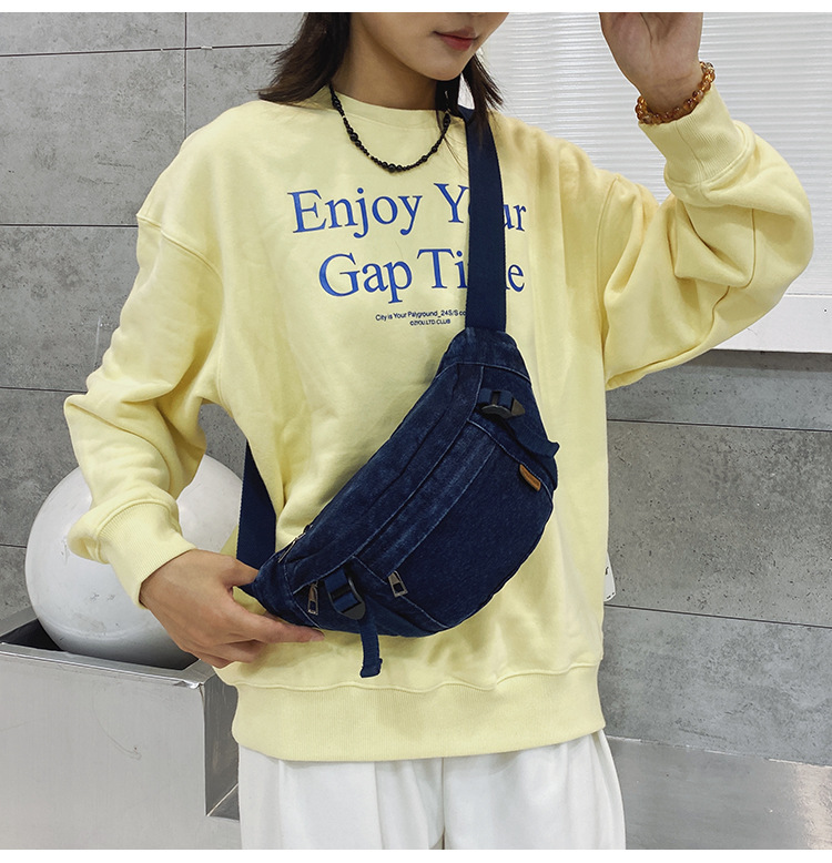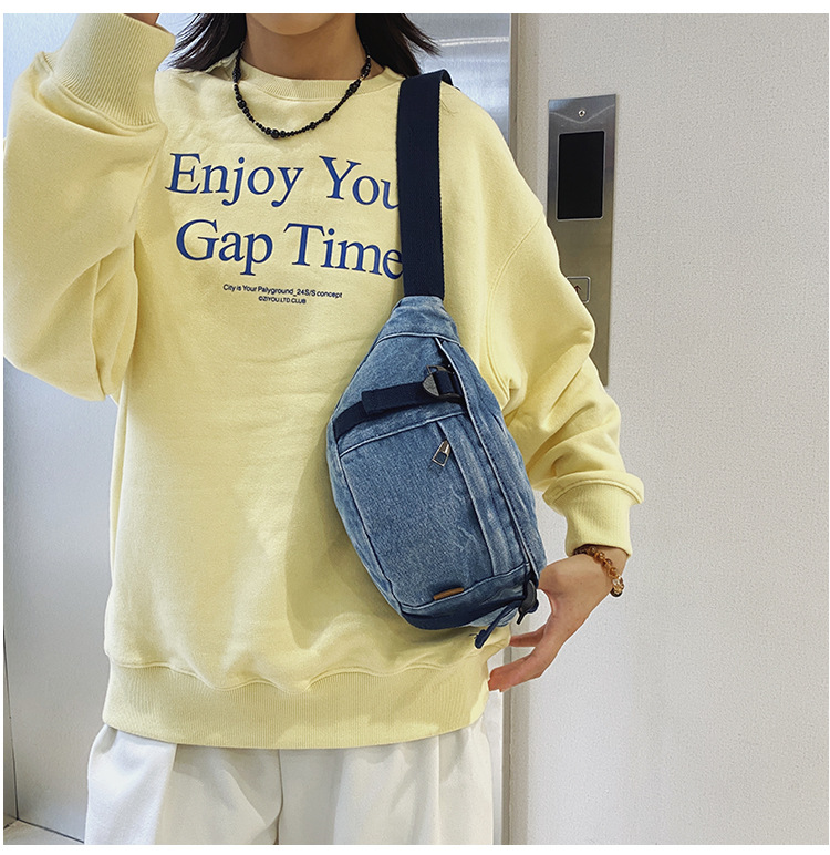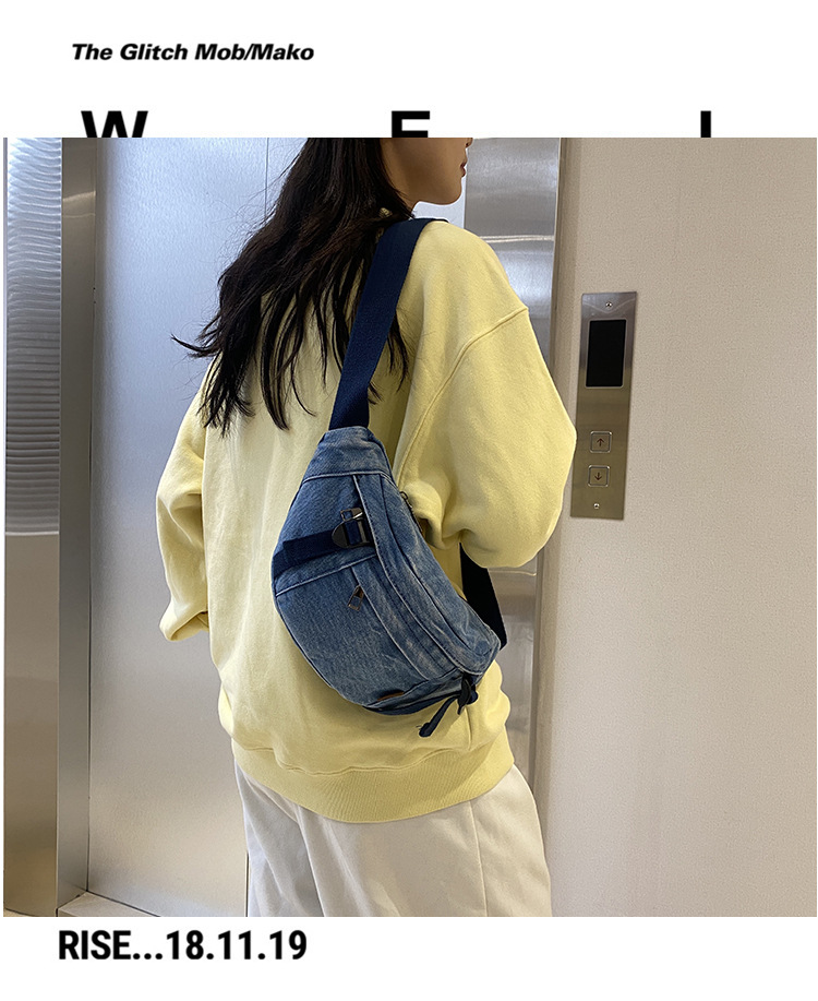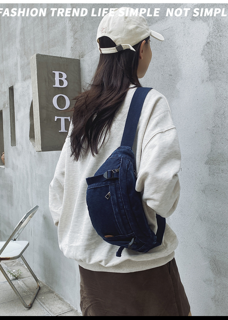 가을 겨울 새 어린이 가슴 가방 한국 캐주얼 세탁 데님 어깨 크로스 바디 가방 대형 어린이 허리 가방 여성용 가방