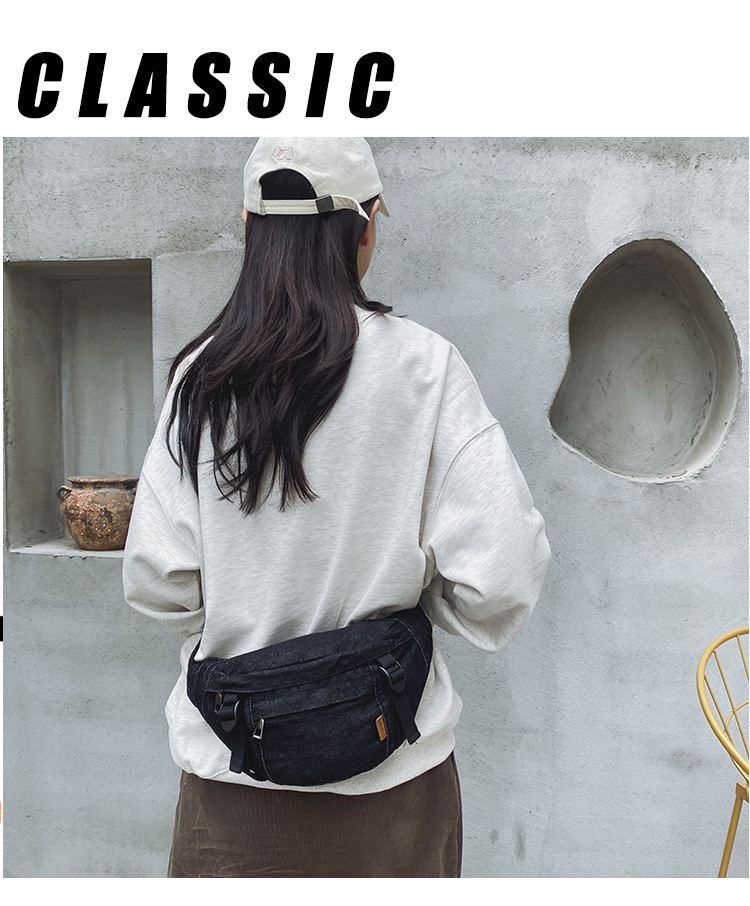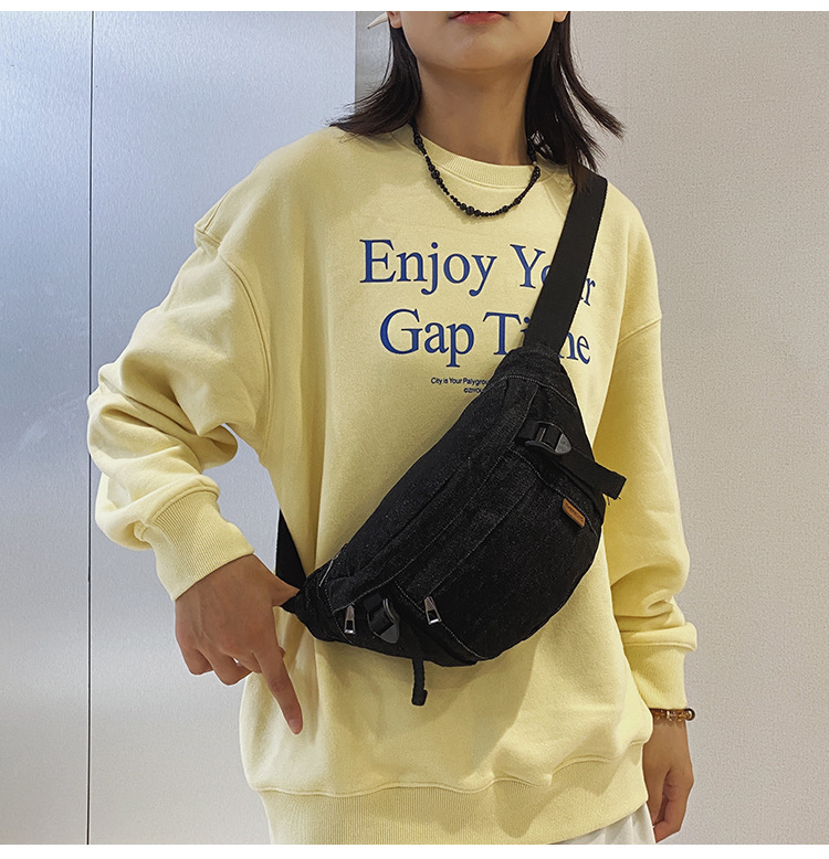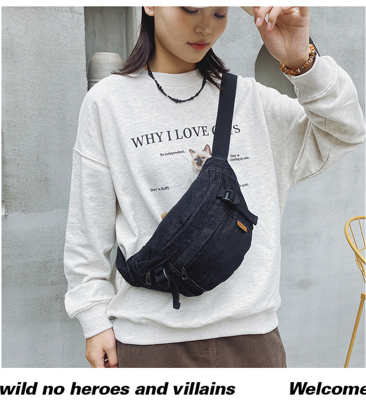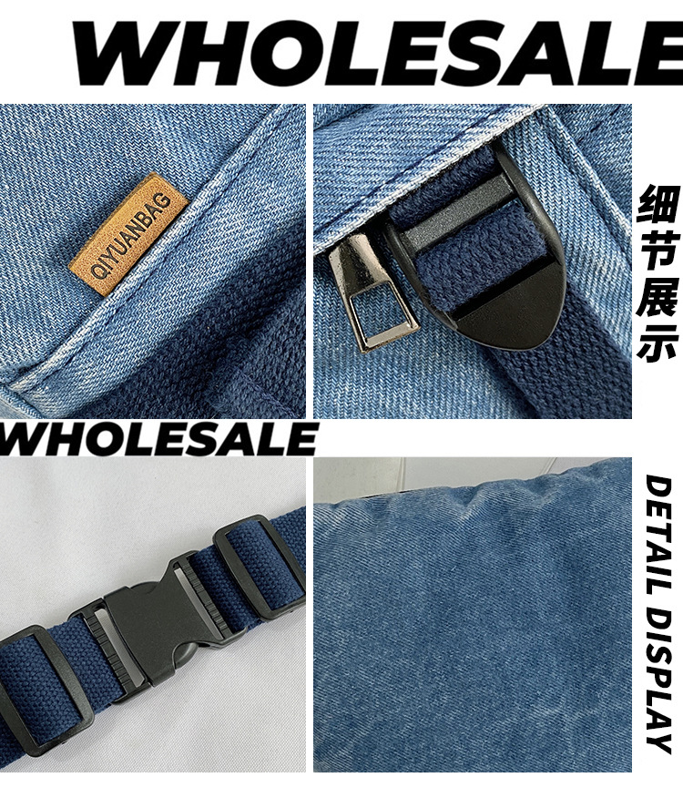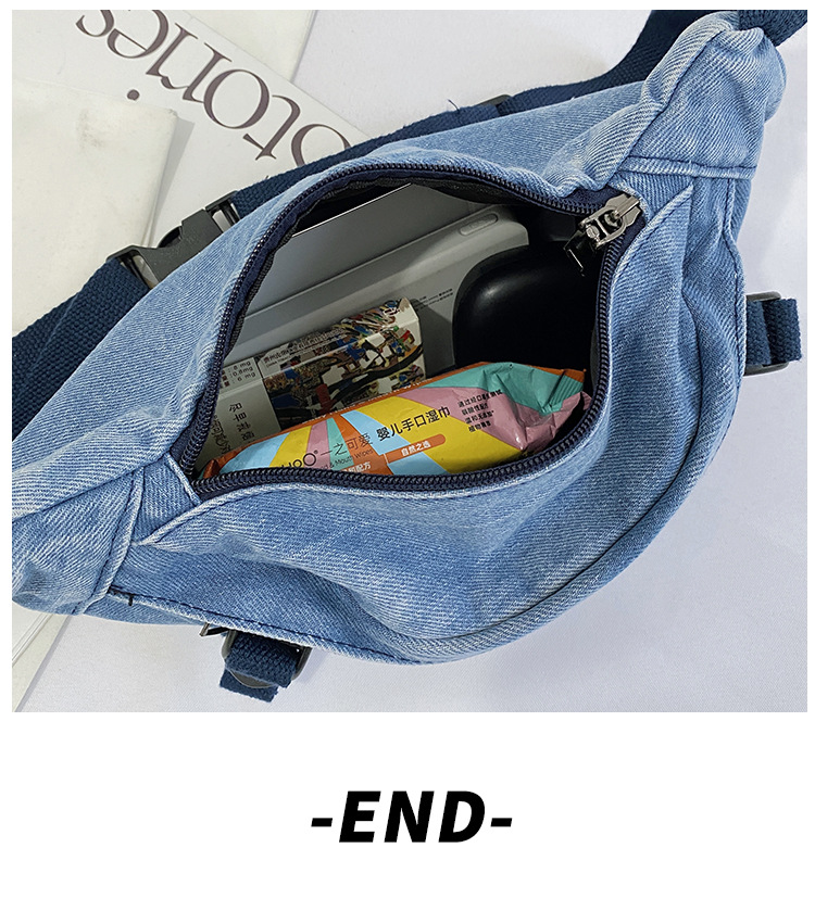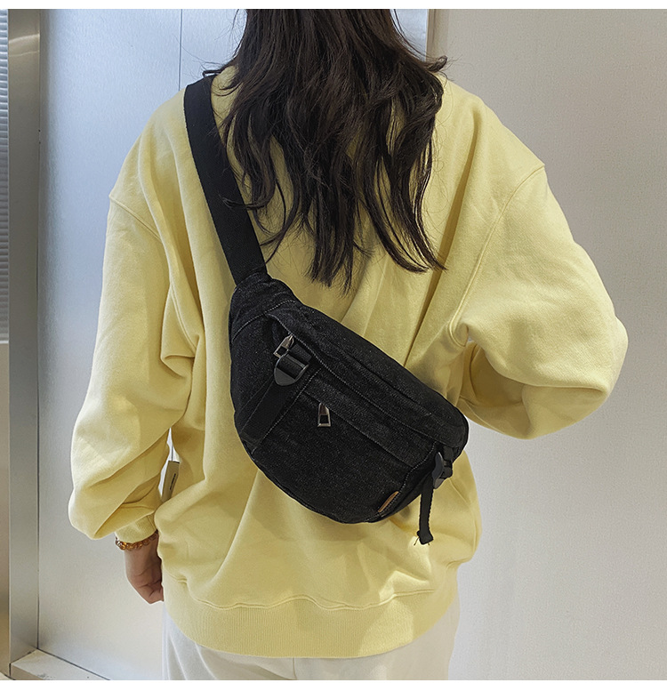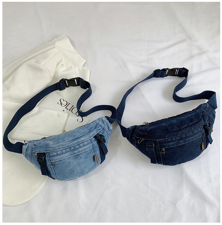 가을 겨울 새 어린이 가슴 가방 한국 캐주얼 세탁 데님 어깨 크로스 바디 가방 대형 어린이 허리 가방 여성용 가방