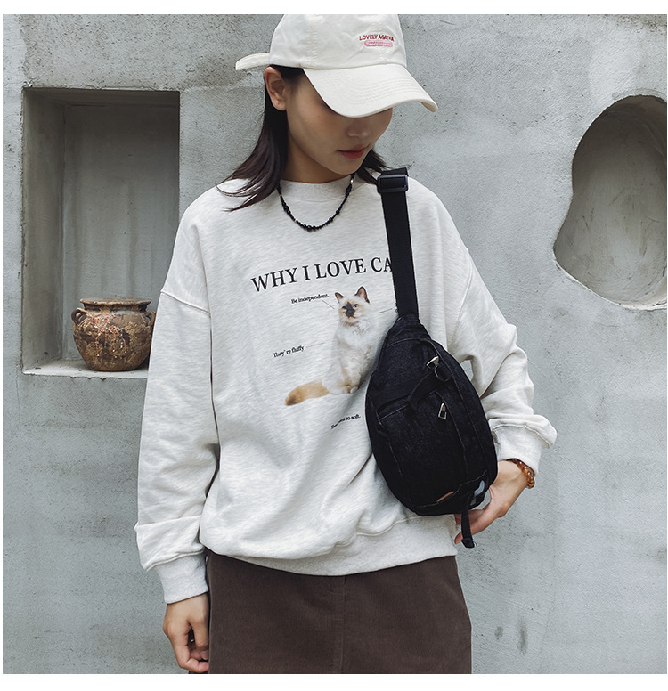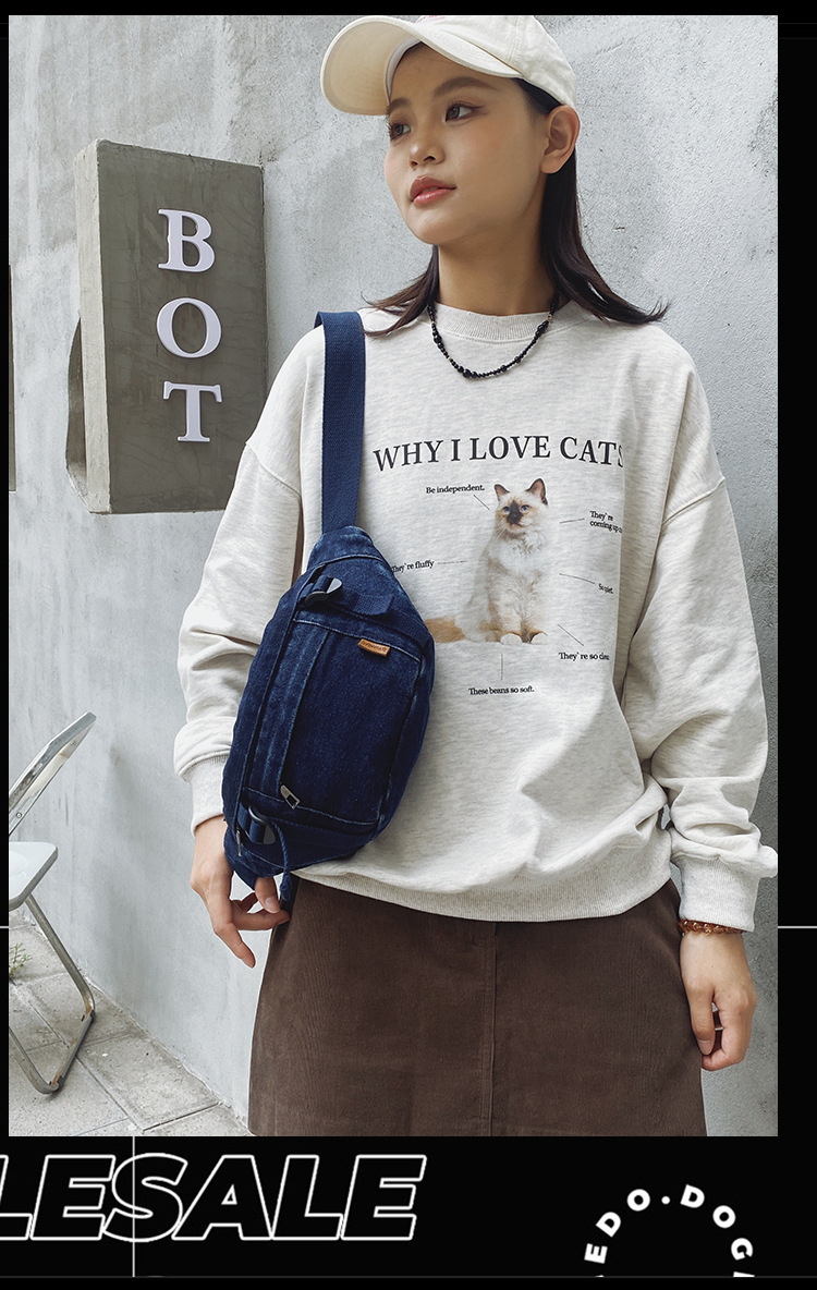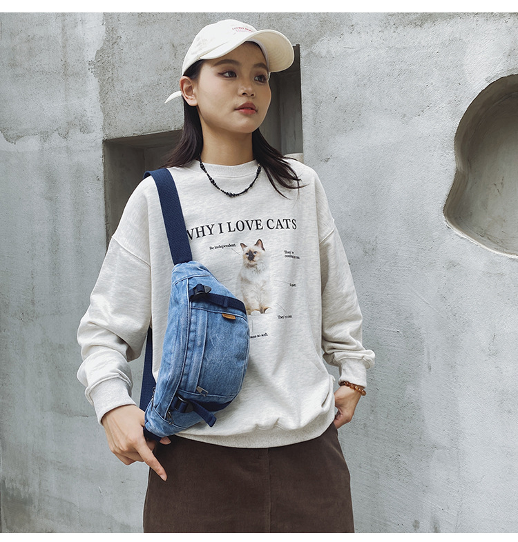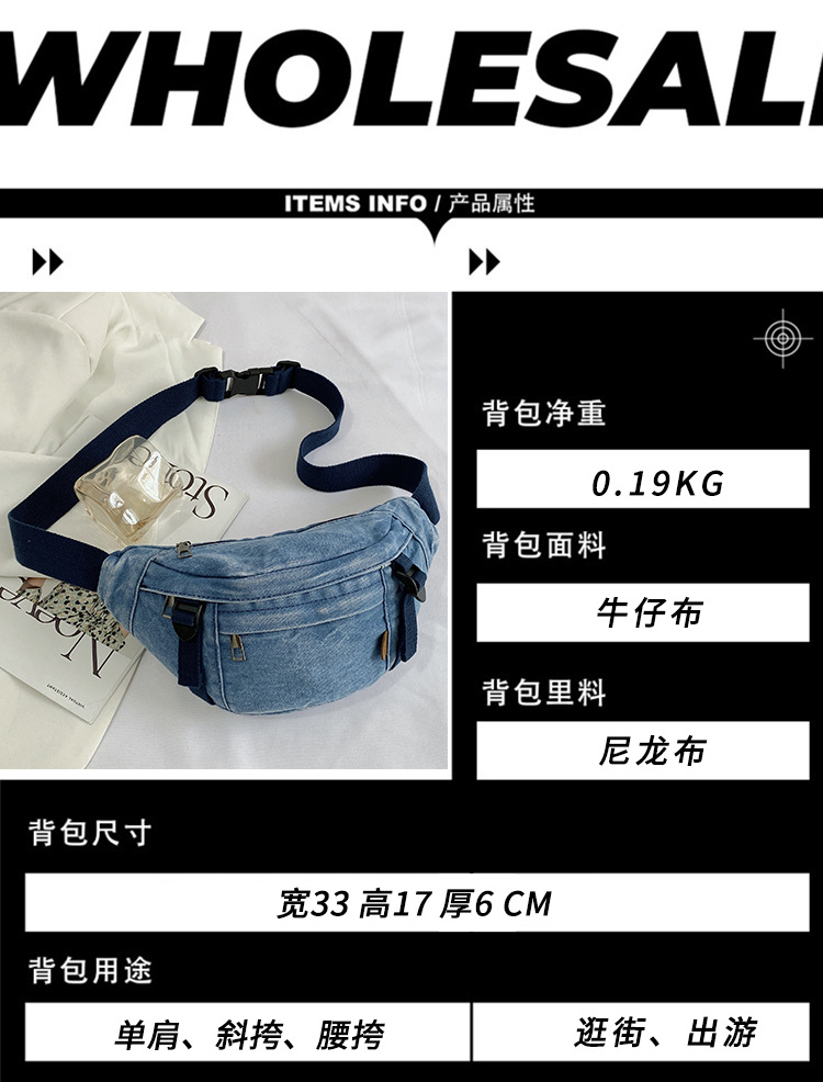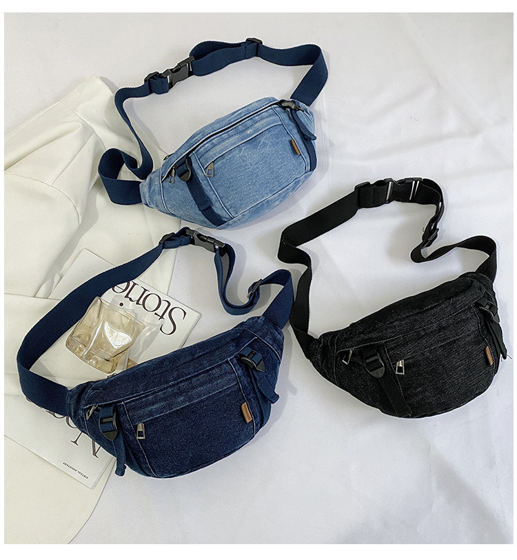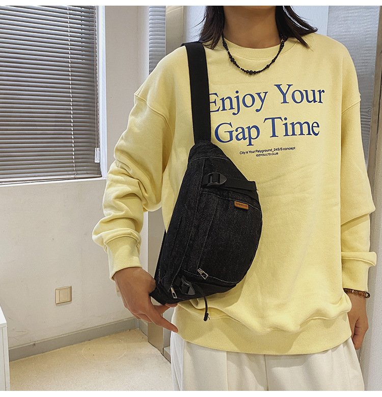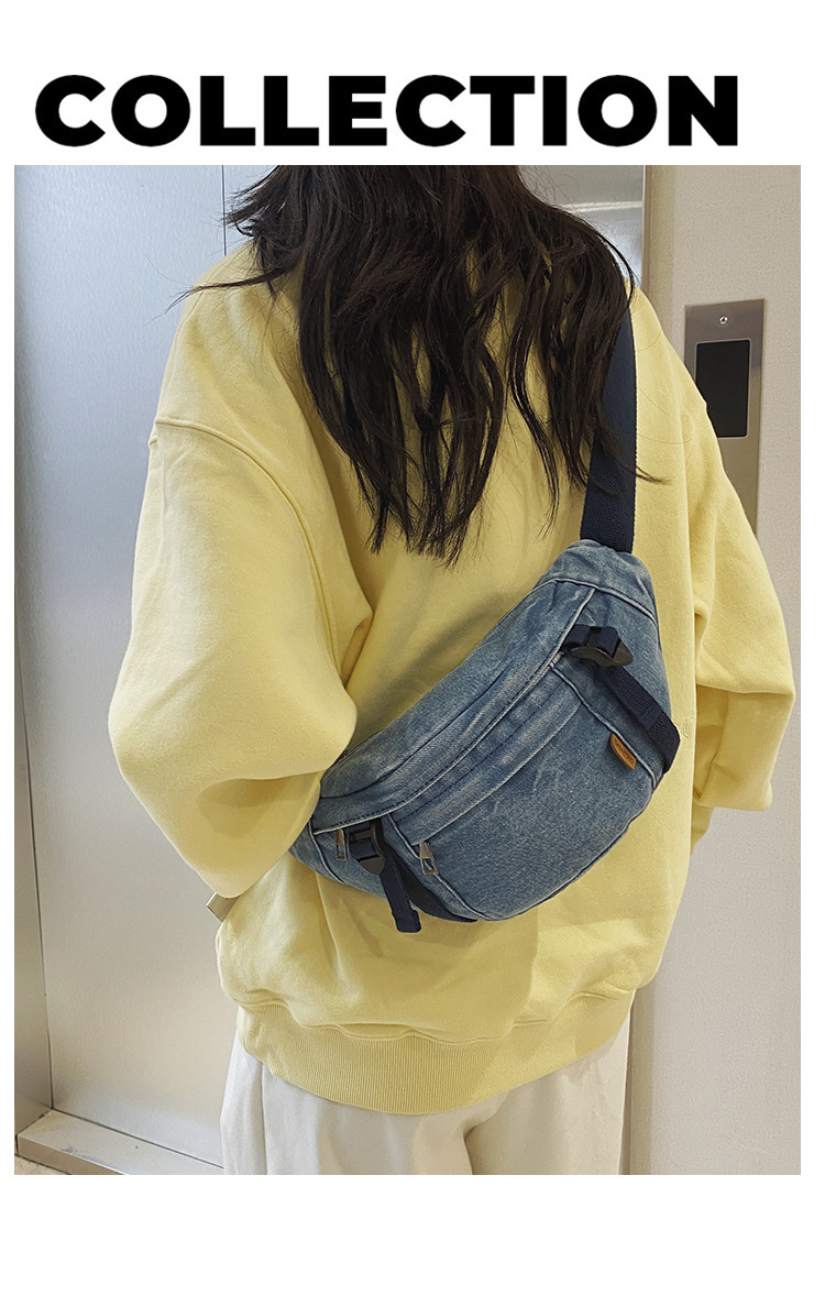 가을 겨울 새 어린이 가슴 가방 한국 캐주얼 세탁 데님 어깨 크로스 바디 가방 대형 어린이 허리 가방 여성용 가방