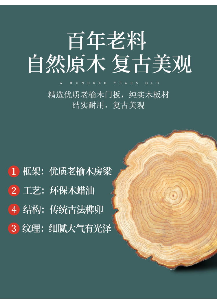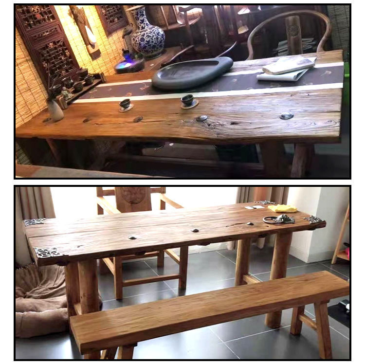 오래된 느릅나무 문판, 통나무, 오래된 나무판, 바 카운터, 단단한 나무 풍화판, 복고풍 향수를 불러일으키는 티 테이블, 티 테이블, 민속 스타일, 레드스토어 가기